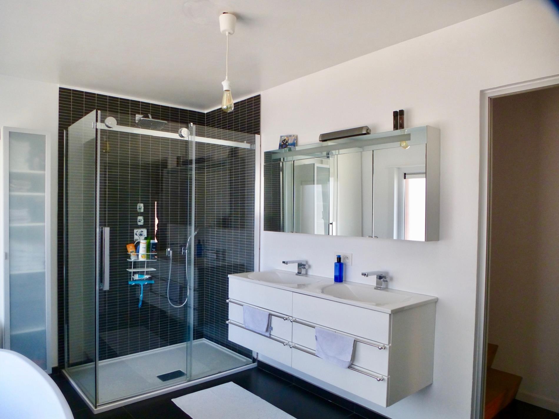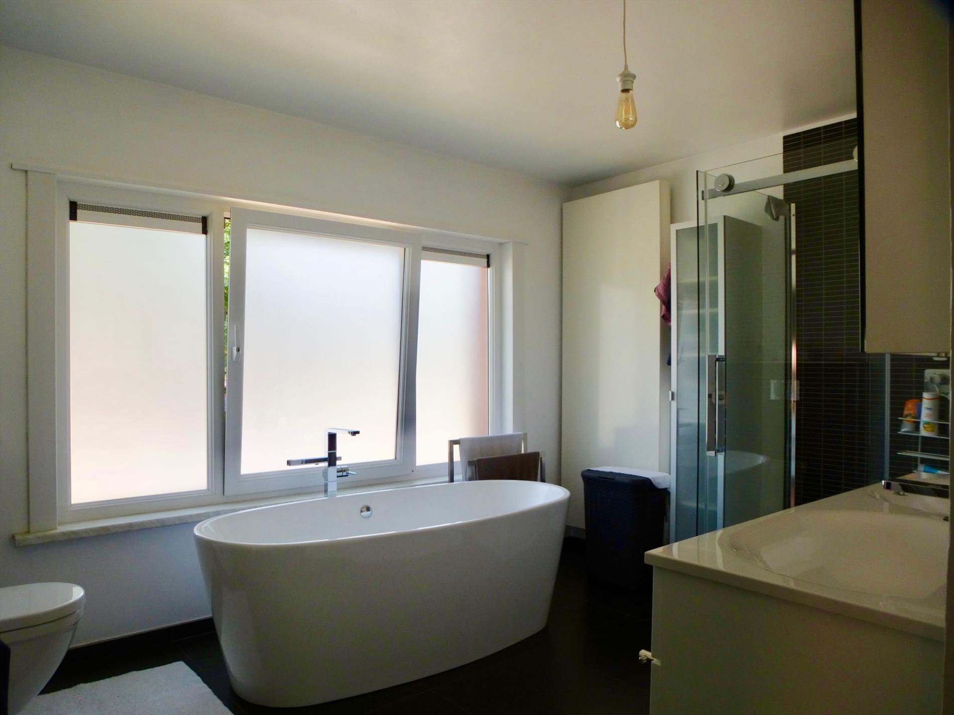 Deze degelijke woning is gelegen te midden een rustige en kindvriendelijke woonwijk. Indeling: gelijkvloers: een inkomhal op tegel met een ingebouwde vestiairekast onder de trap en een technische ruimte. Tevens is er een master-bedroom 15m² op laminaat met uniek zicht op de tuin. Een afzonderlijke badkamer 7m² uitgerust met een ligbad/douche en een wastafel.