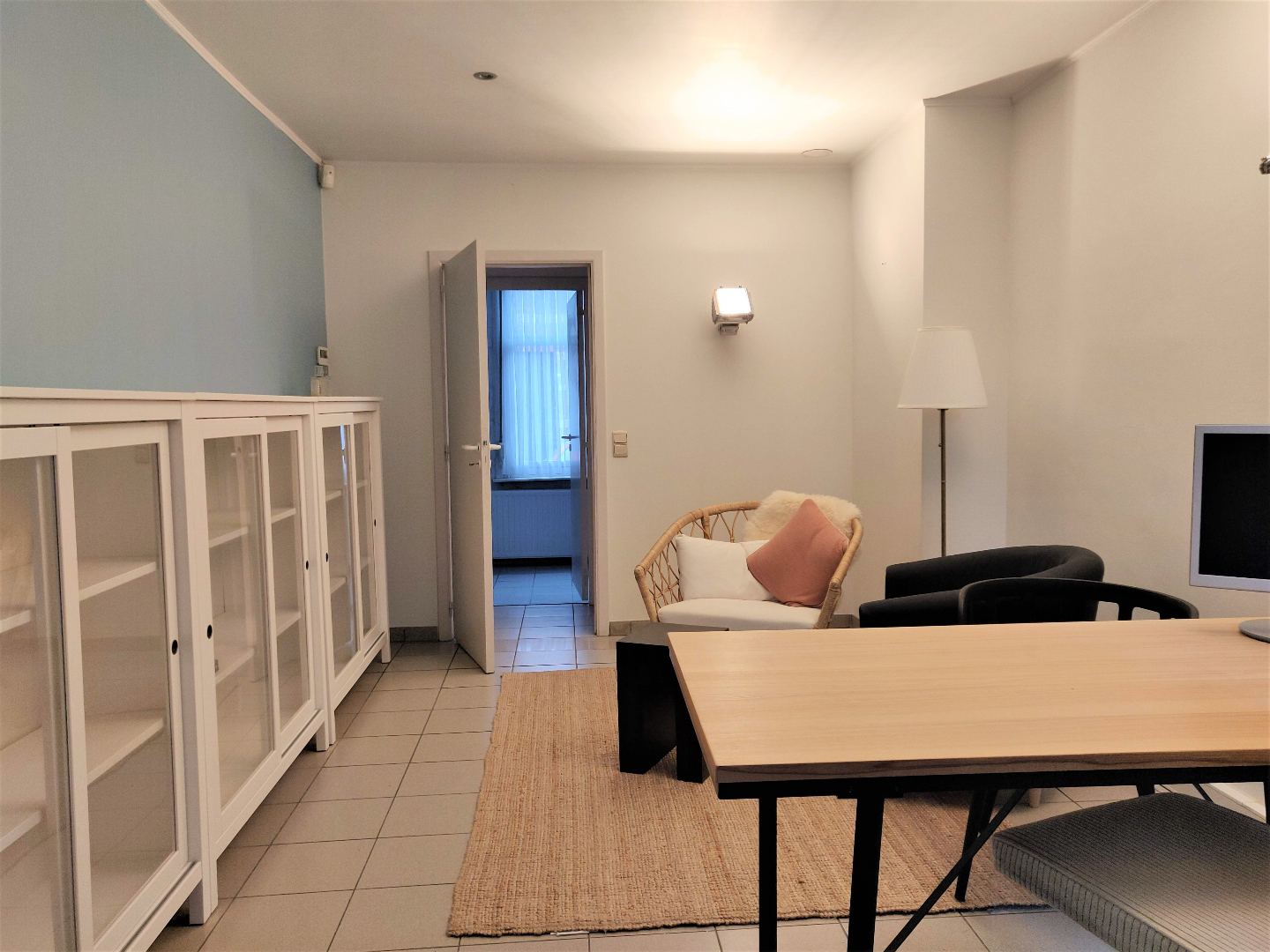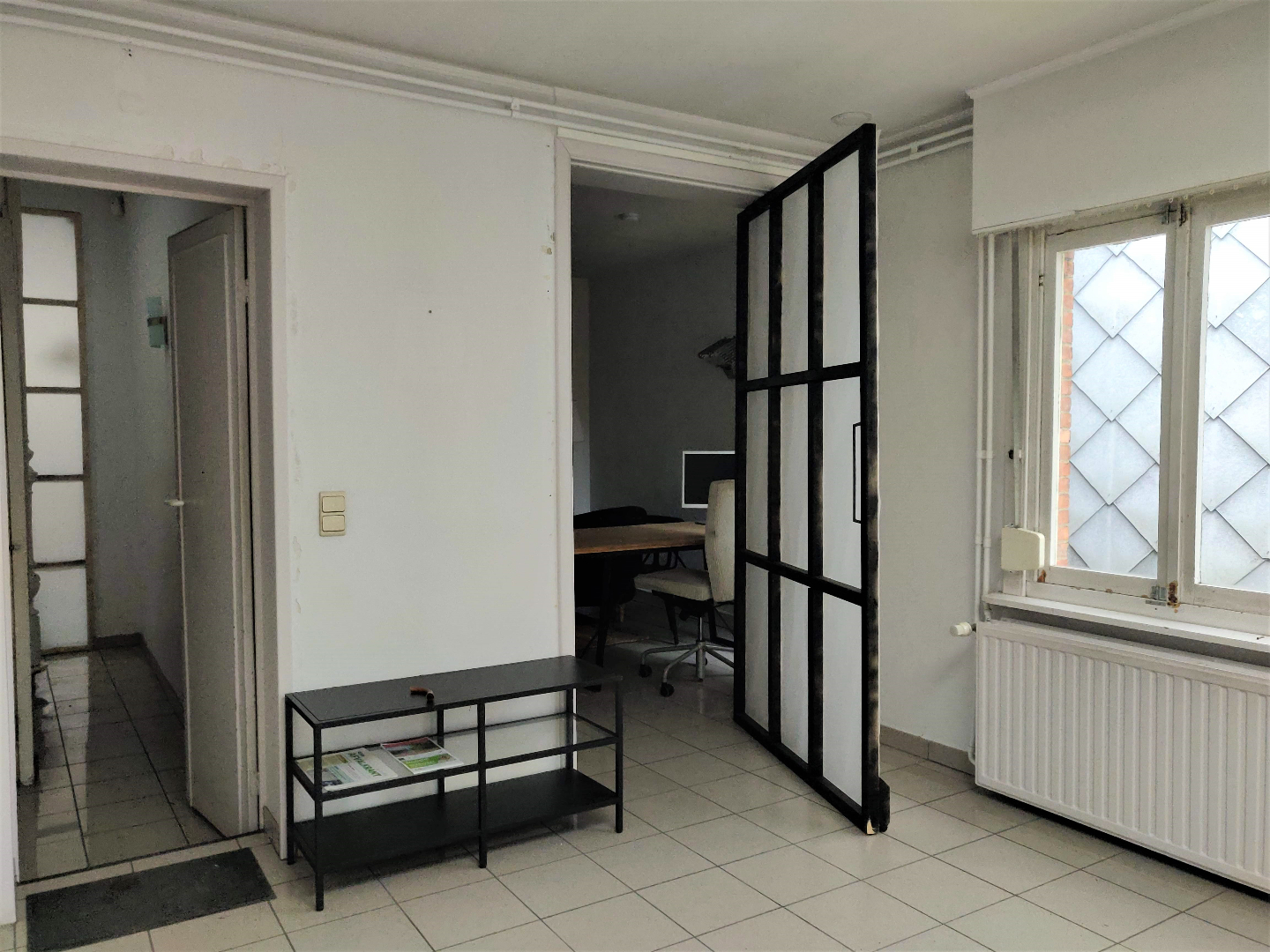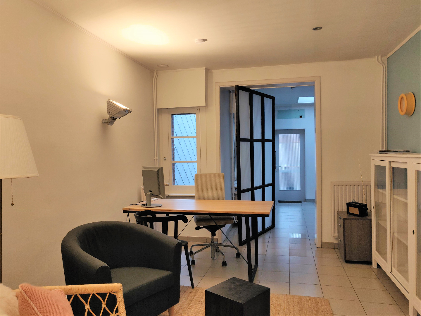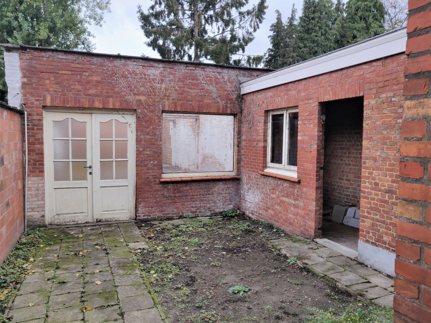 Deze woning beschikt over een gerenoveerd gedeelte waar reeds een wachtzaal, praktijkruimte, bureel en sanitair aanwezig zijn (voorheen tandartspraktijk). Achteraan is er nog een labo-ruimte, berging en CV- berging. In de inkom vinden we de toegang naar de kelder. Op de eerste verdieping zijn er 2 ruime slaapkamers en een vaste trap naar de zolderverdieping. Deze beschikt over een douchekamer en mogelijkheid om een woon/ keukengedeelte te verwezenlijken. De woning heeft een smalle zij-ingang die u naar de tuin en te renoveren atelier (zonder dak) brengt.