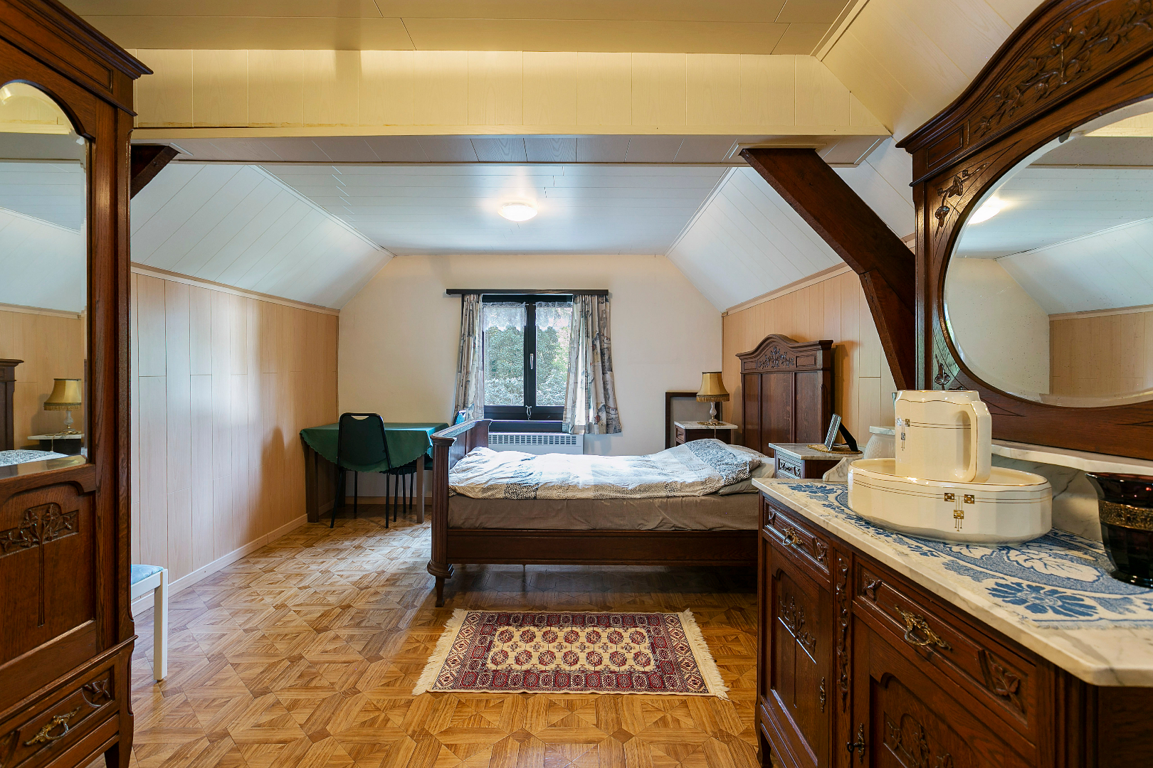 In een doodlopende straat te midden een bosrijke omgeving ligt deze te renoveren landhuis. Indeling: inkomhal, een woon- en eetkamer, een keuken met kookplaat, dampkap, spoelbak, boven- en onderkasten. Aansluitend de keuken is er een badkamer met ligbad met douchescherm, lavabo, toilet en een aansluiting voor wasmachine. Er is een inpandige garage met technische ruimte. Op de eerste verdieping is er een overloop en bevinden er zich 2 slaapkamers. De woning is gelegen op een steenworp van Schotensteenweg en Van Bavellaan te Sint-Job-in-'t-Goor.