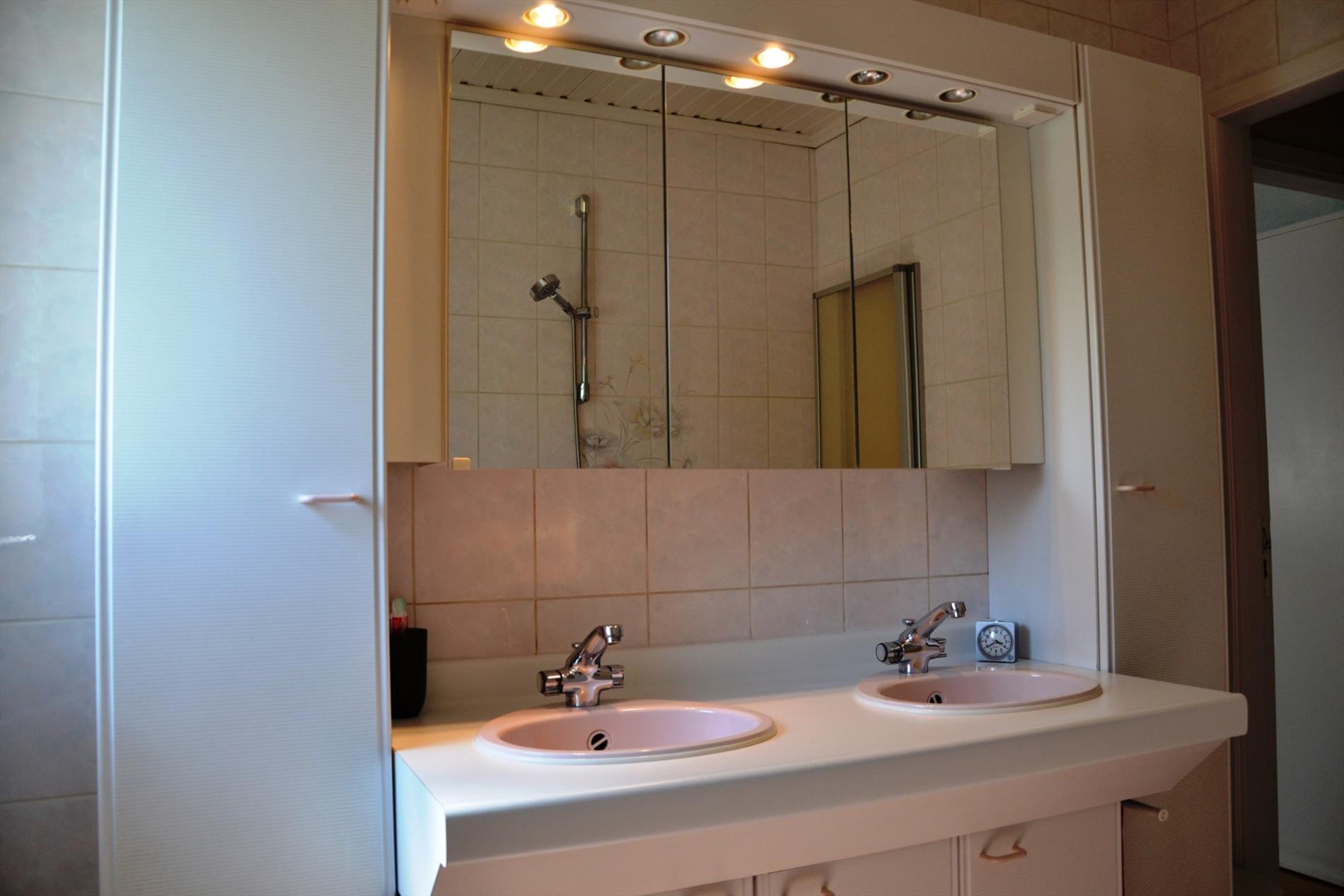 Gelegen op de hoek van de Bist en de Leliënlaan ligt deze zeer degelijke vrijstaande woning. Indeling: inkom, een leefruimte op vissegraat-parket 48m², een halfopen ingerichte keuken 15m² met aansluitend een eetkamer 15m². Er is een achterinkom en een benutbare kelder 30m². Het is aangenaam vertoeven in een zuidwest tuin met terras voorzien van een zonneluifel en een vrijstaande garage 15m². Op de verdieping bevinden er zich 3 slaapkamers (15m², 16m² en 16m²) waarbij de hoofdslaapkamer met een dressingkamer 11m². De badkamer beschikt over een ligbad en dubbele wastafel. De bergzolder is bereikbaar via een valluik.