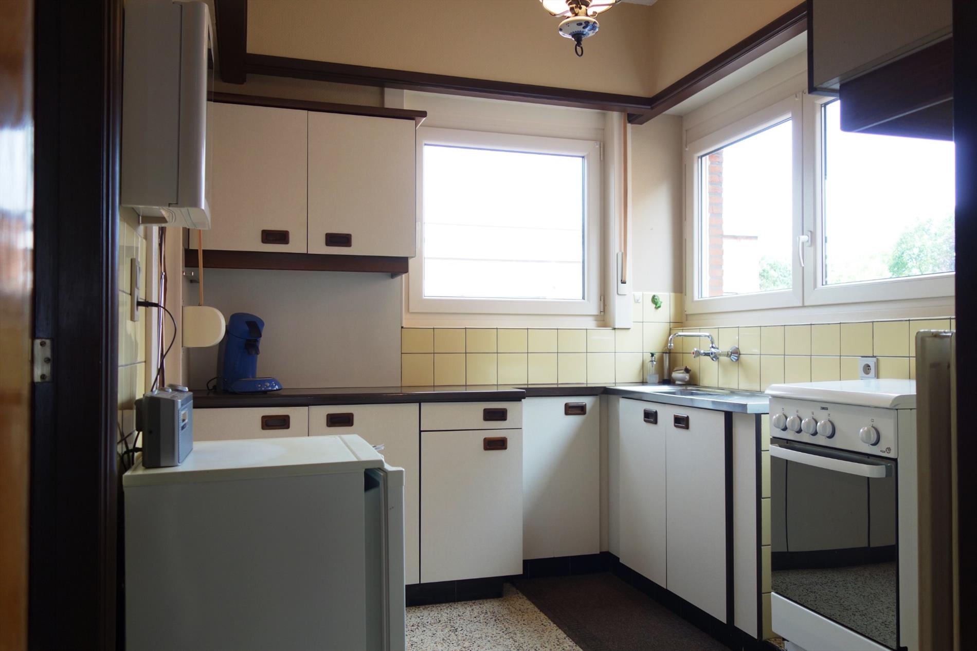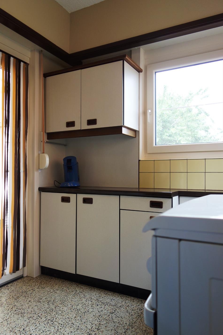 Indeling: inkomhal met gastentoilet, een L-vormige leefruimte met schuifraam naar de achtertuin en een gesloten keuken met achterinkom. De eerste verdieping omvat een nachthal, 3 slaapkamers (12m², 12m² en 13m²) en een badkamer. Verder beschikt de woning over een provisiekelder, een ruime bergzolder dewelke bereikbaar is via een vlizotrap en over een vrijstaande garage in de westelijk georiënteerde achtertuin. Bijzonderheden: De woning is uitgerust met vernieuwde ramen (2011, PVC, dubbele beglazing). Na de nodige opfrissing- en renovatiewerken is dit een unieke plek om te vertoeven.
