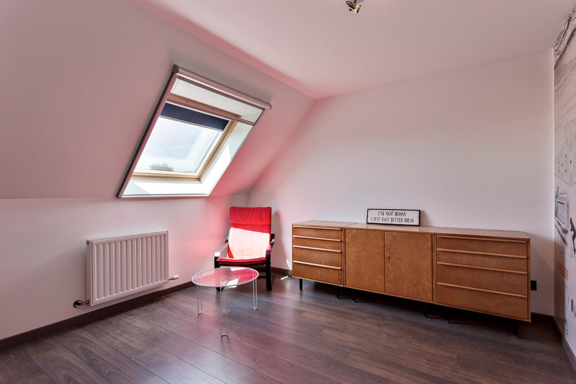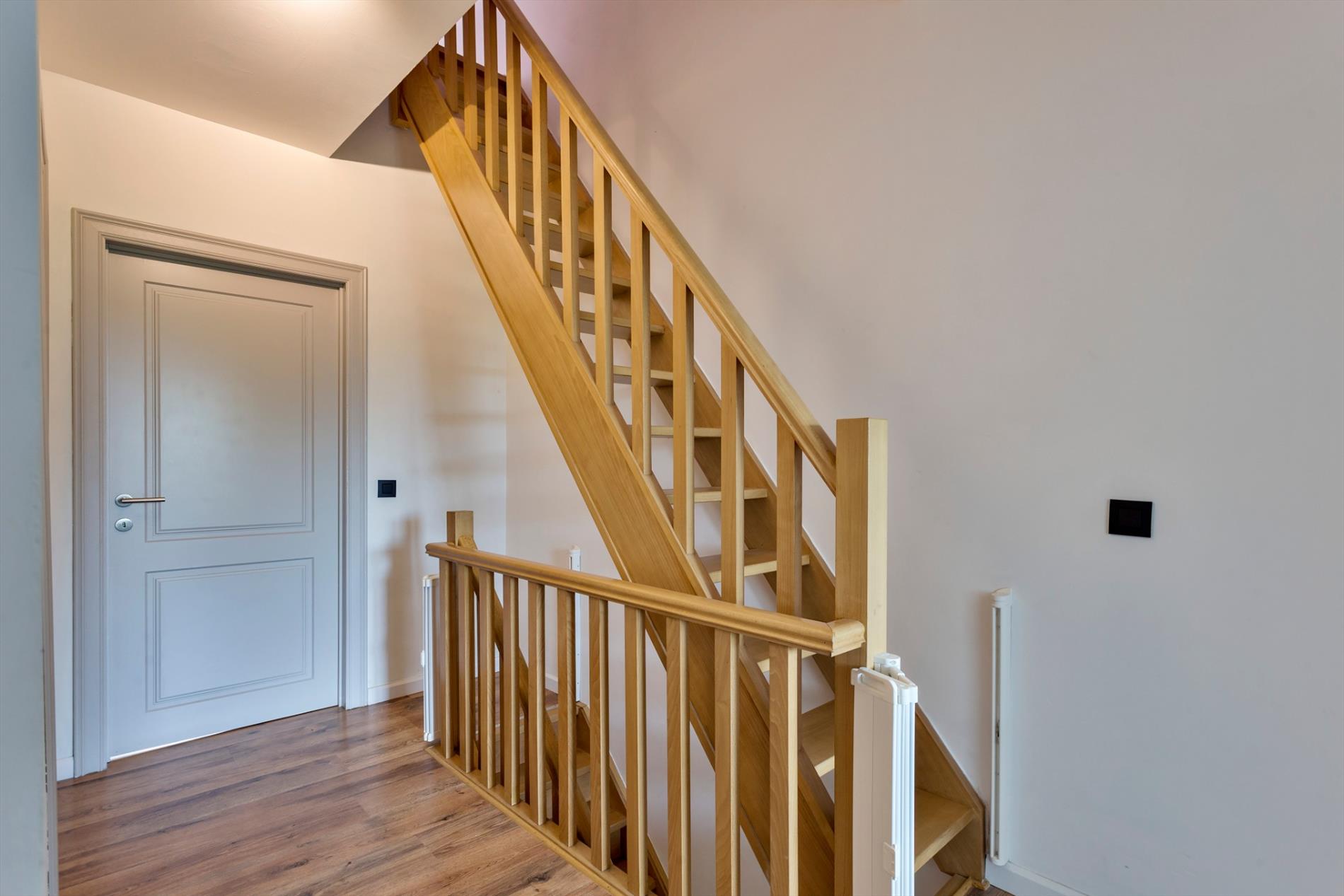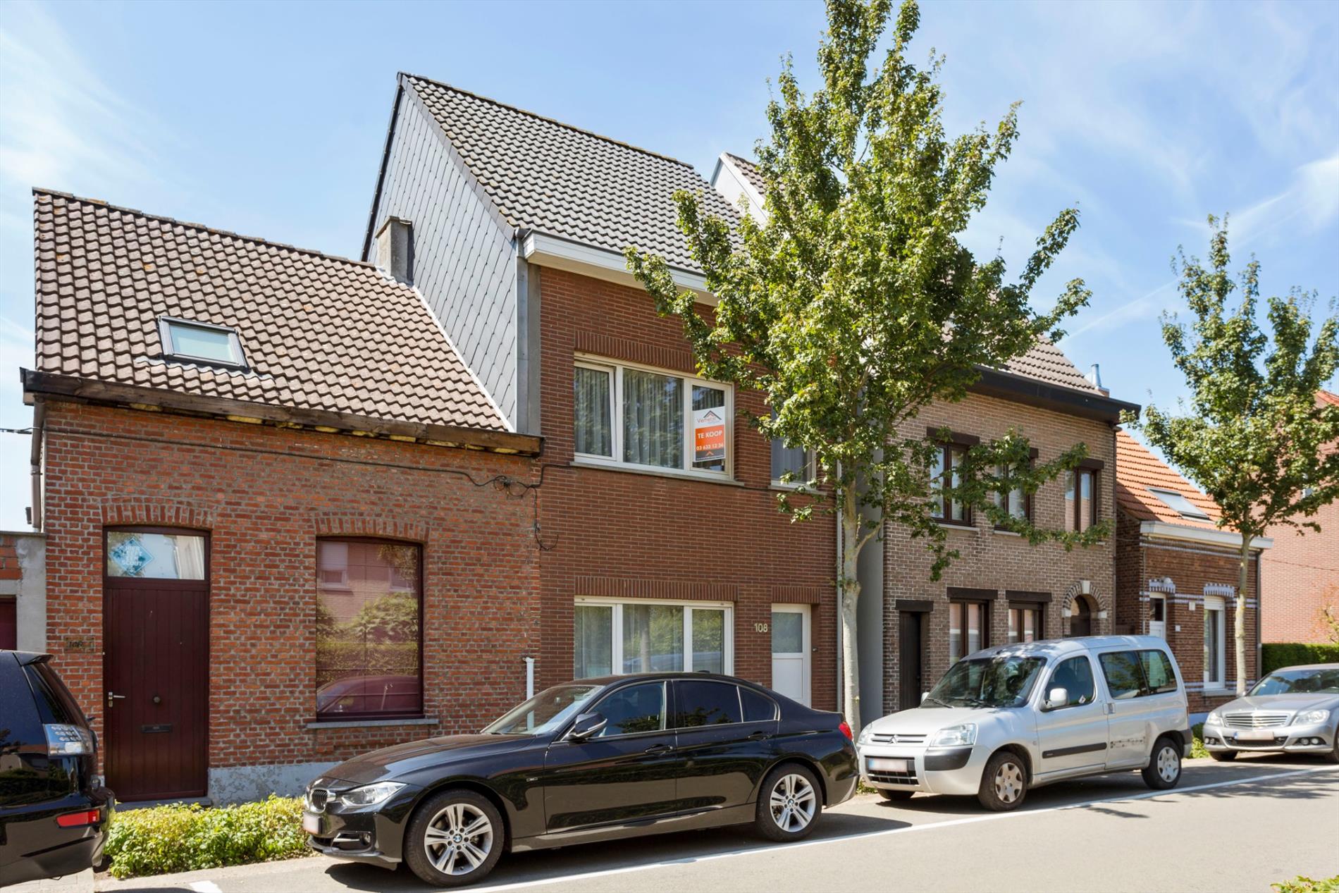 In een rustige straat op een centrale locatie vinden we deze gezinswoning op een perceel van 430m² met praktische zij-ingang. Deze woning werd in 2005 volledig gerenoveerd volgens de regels van de kunst. Indeling: inkom, gezellige leefruimte opgedeeld in een zit- en eetgedeelte. De aanbouw omvat een apart toilet, een praktische berging / wasplaats en een lichtrijke open keuken voorzien van hedendaags conform. De keuken geeft uit op de fraai aangelegde omheinde tuin met terras en tuinhuis. Op de eerste verdieping zijn er 3 slaapkamers, een comfortabele badkamer met ligbad en een apart toilet. De 2e verdieping omvat een multifunctionele ruimte met reeds aansluiting voor warm-koud water en aangrenzend een bergplaats. Kortom een ideale gezinswoning in een kindvriendelijke buurt nabij scholen, op- en afrit autostrade, winkels en openbaar vervoer.
