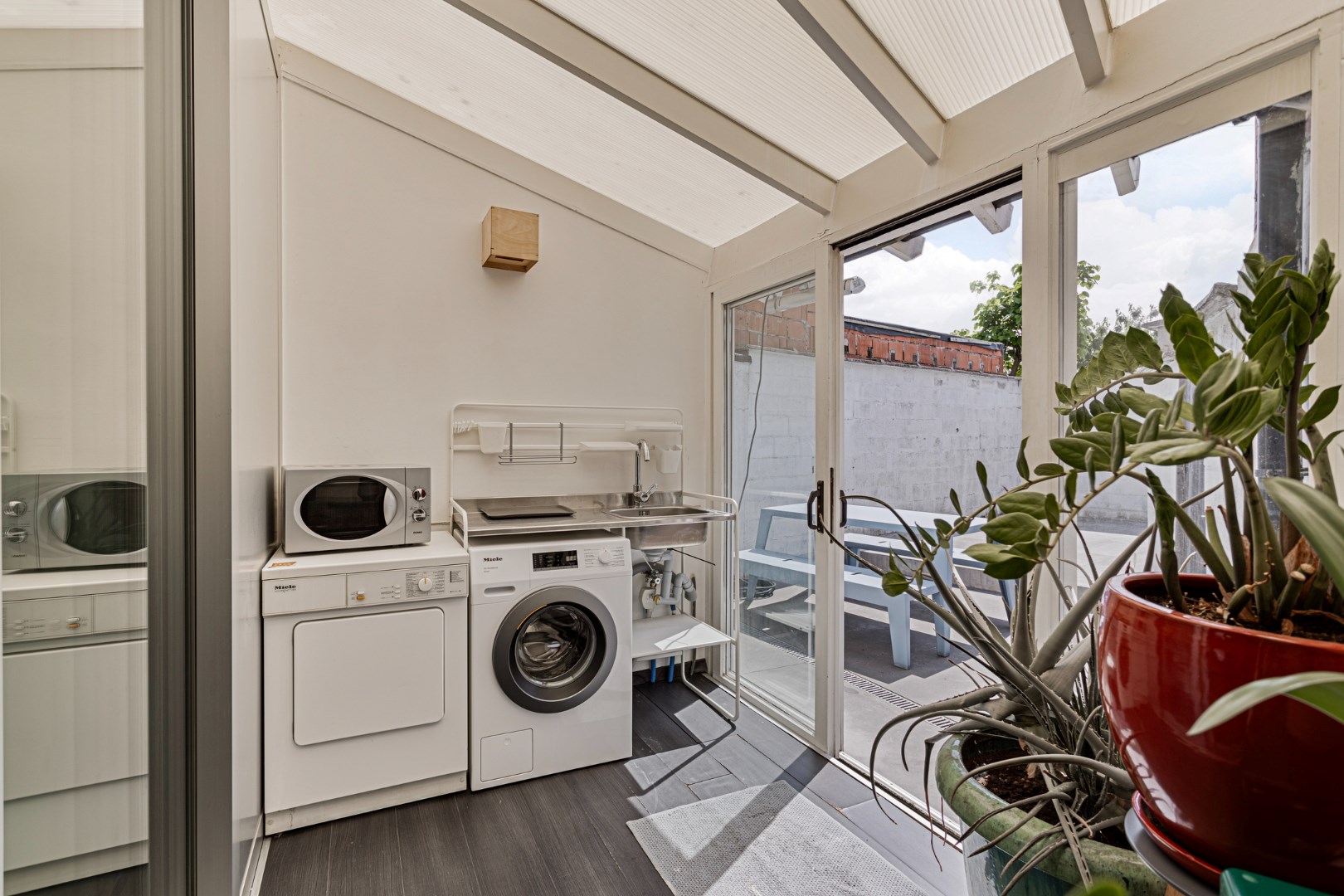 Deze gezellige, gerenoveerde woning is rustig en ideaal gelegen nabij het centrum van Ekeren. De woning omvat een inkomhal met gastentoilet, een lichtrijke woon- en eetkamer (30m²) met open keuken. De keuken is ingericht met een oven, koelkast, afwasmachine, ijskast en diverse bergkasten. Verder is er een veranda met aansluiting voor uw wasmachine en droogkast, deze geeft tevens toegang tot de verharde tuin. Op de eerste verdieping vindt u een ruime slaapkamer 17m² met ingebouwde dressing, een badkamer met douche, bad, toilet en lavabomeubel. Verder is er een 2e kamer die u als dressing of bureau (7m²) kan gebruiken, via de vaste trap in deze kamer kan u de afgewerkte zolderverdieping (11m²) bereiken. De kelder (7m²) is via de woonkamer toegankelijk. Bijzonderheden: de woning heeft 9 zonnepanelen mét batterij. De woning heeft een recht van wegenis over nevensliggende eigendom om te komen op de straat. Elektriciteit is conform. Kortom een mooie hedendaagse woning op een rustige locatie nabij winkels, openbaar vervoer, scholen, ...