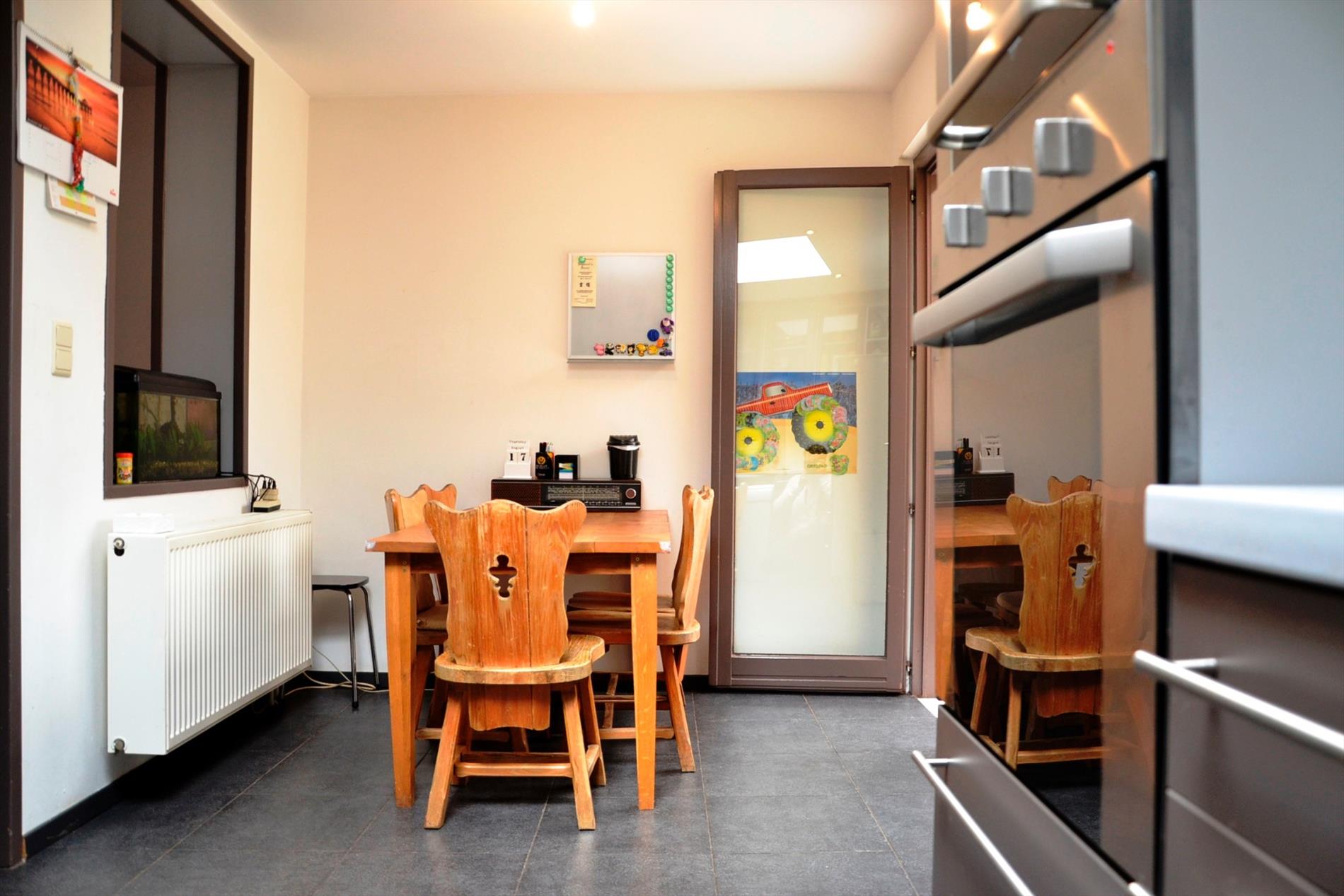 Deze gerenoveerde woning is gebouwd op een perceel 610m² en beschikt over een oost georiënteerde tuin. Ideaal gelegen aan de rand van het centrum en de tuin biedt mogelijkheden voor dierenliefhebbers en/of tuinliefhebbers. Indeling: inkomhal 6m², woon- en eetkamer 32m² met gezellige houtkachel. Een halfopen ingerichte keuken 14m² met ontbijthoek. Er is een aangename veranda met toegang tot de tuin. Aansluitend de veranda is er een apart toilet, een berging en een badkamer voorzien van een ligbad en douche. Op de eerste verdieping is er een nachthal 11m², 3 slaapkamers (10m², 10m² en 9m²). Bijzonderheden: mogelijkheid tot klein beschrijf