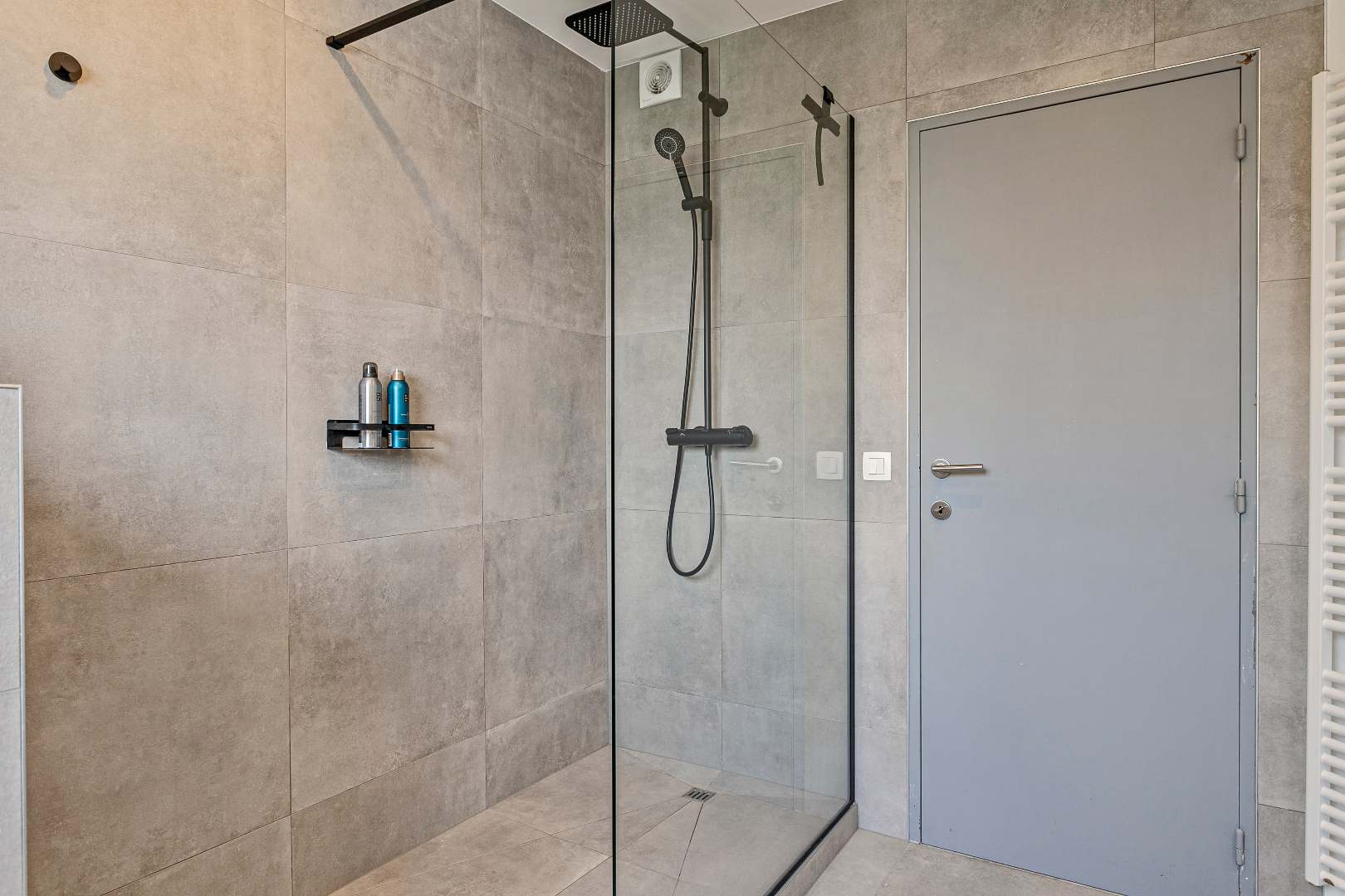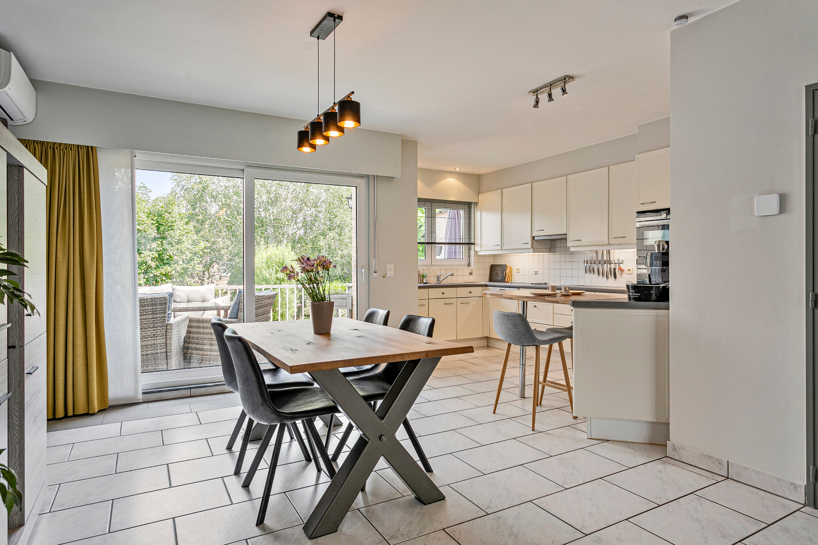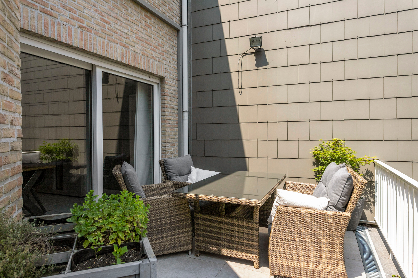 Zonnepanelen, airconditioning, overal rolluiken, zowel terras op het gelijkvloers als op de eerste verdieping.