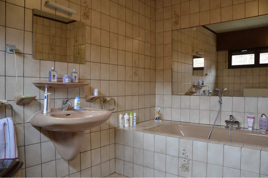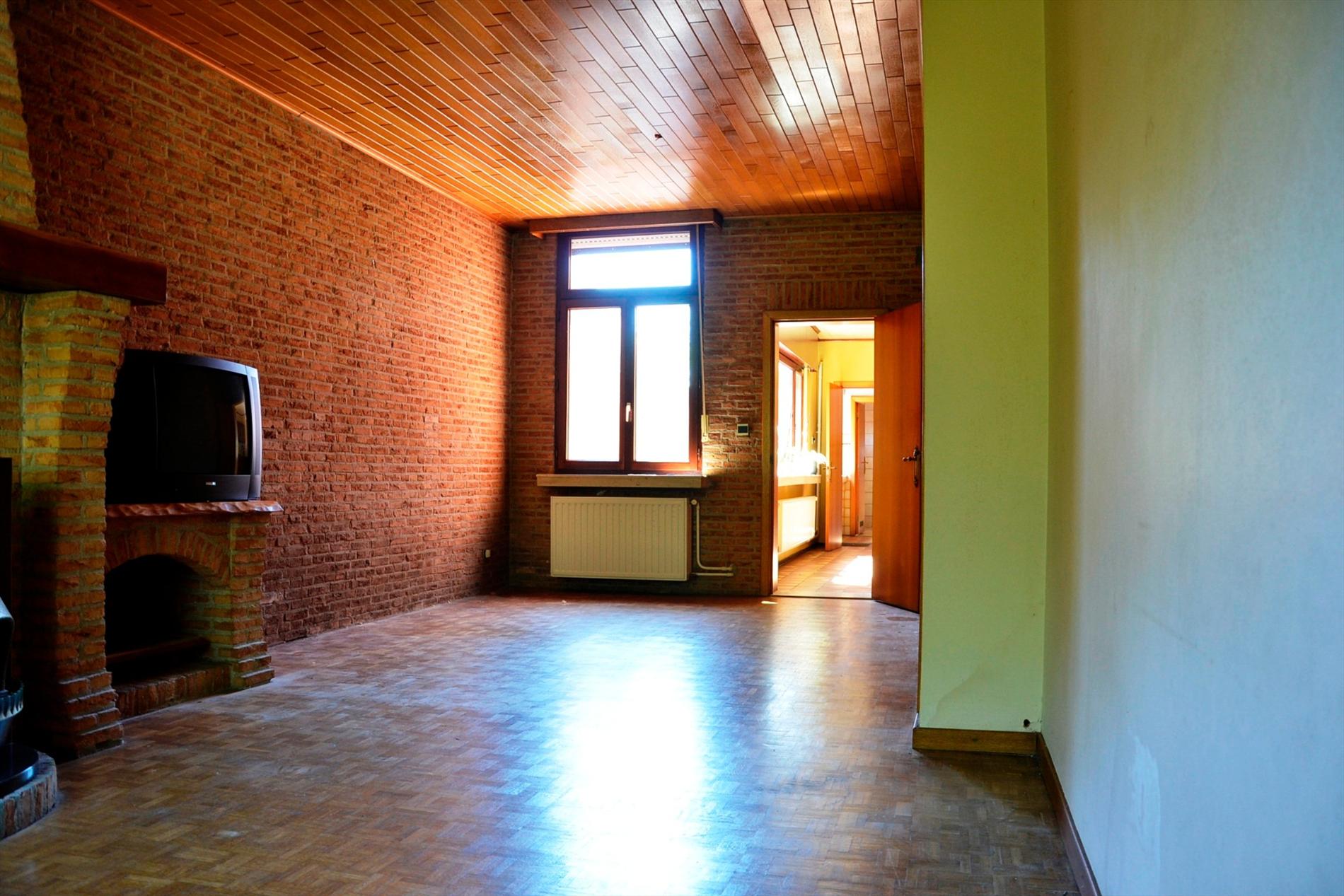 Op te frissen woning met garage en zij-ingang. Indeling: inkomhal (11m²), woonkamer (30m²) op parket en aansluitend een ingerichte keuken (16m²). Tevens is er een praktische wasplaats (8m²) en een badkamer (8m²) met ligbad. Op de 1ste verdieping bevinden zich de 2 slaapkamers (13m² en 18m²) en op de 2e verdieping is er een bergzolder (23m²) dewelke mits enige aanpassingswerken kan ingericht worden als 3e slaapkamer. Er is een aangename tuin met een garage (35m²) met voldoende bergruimte dewelke te bereiken is via een achterliggende straat. Klein beschrijf mogelijk. EPC:583kWh/m² UC:1081734.