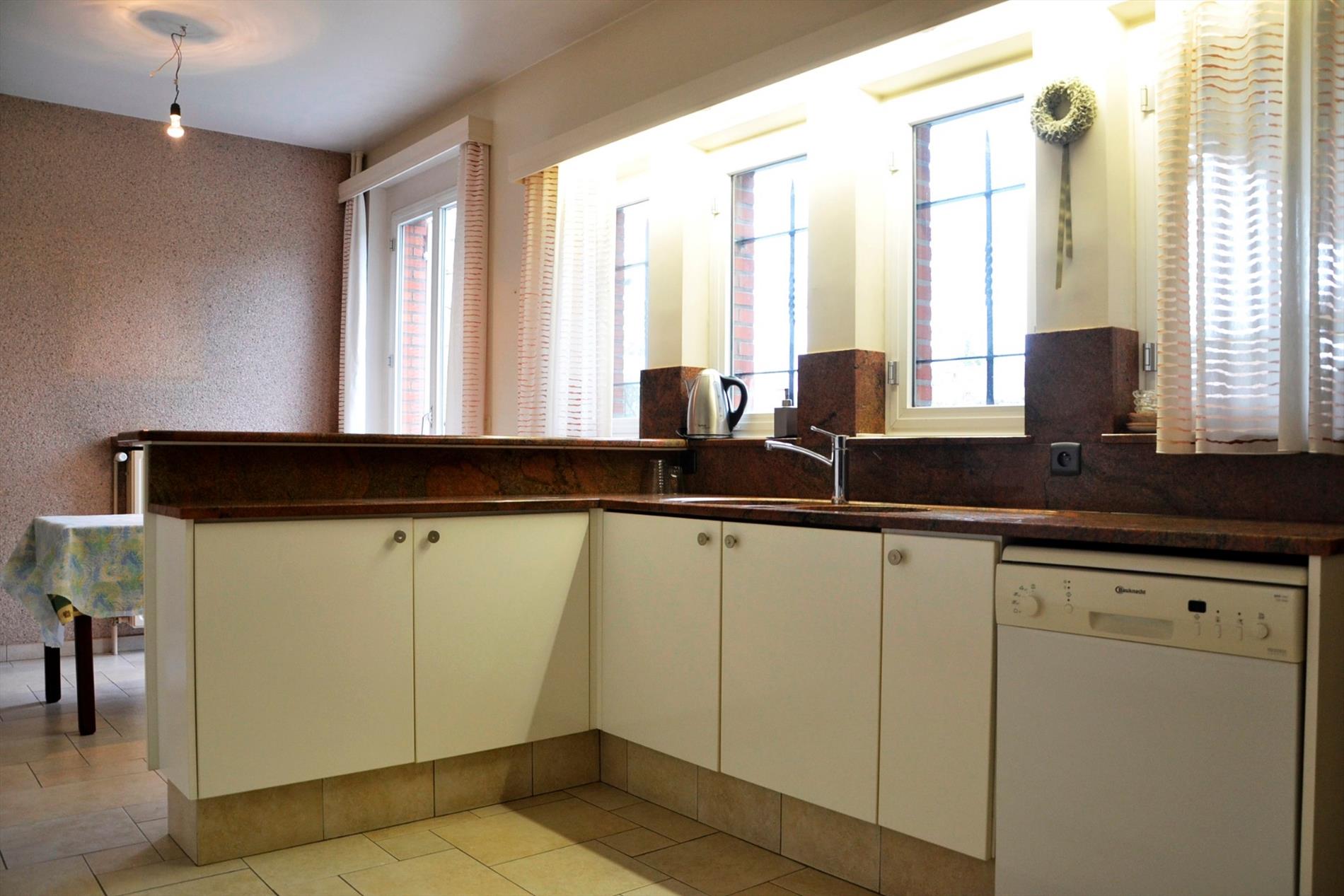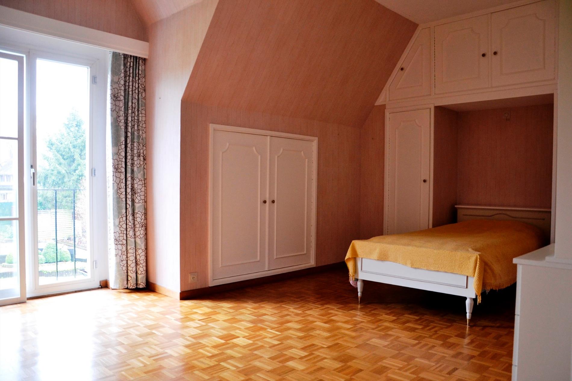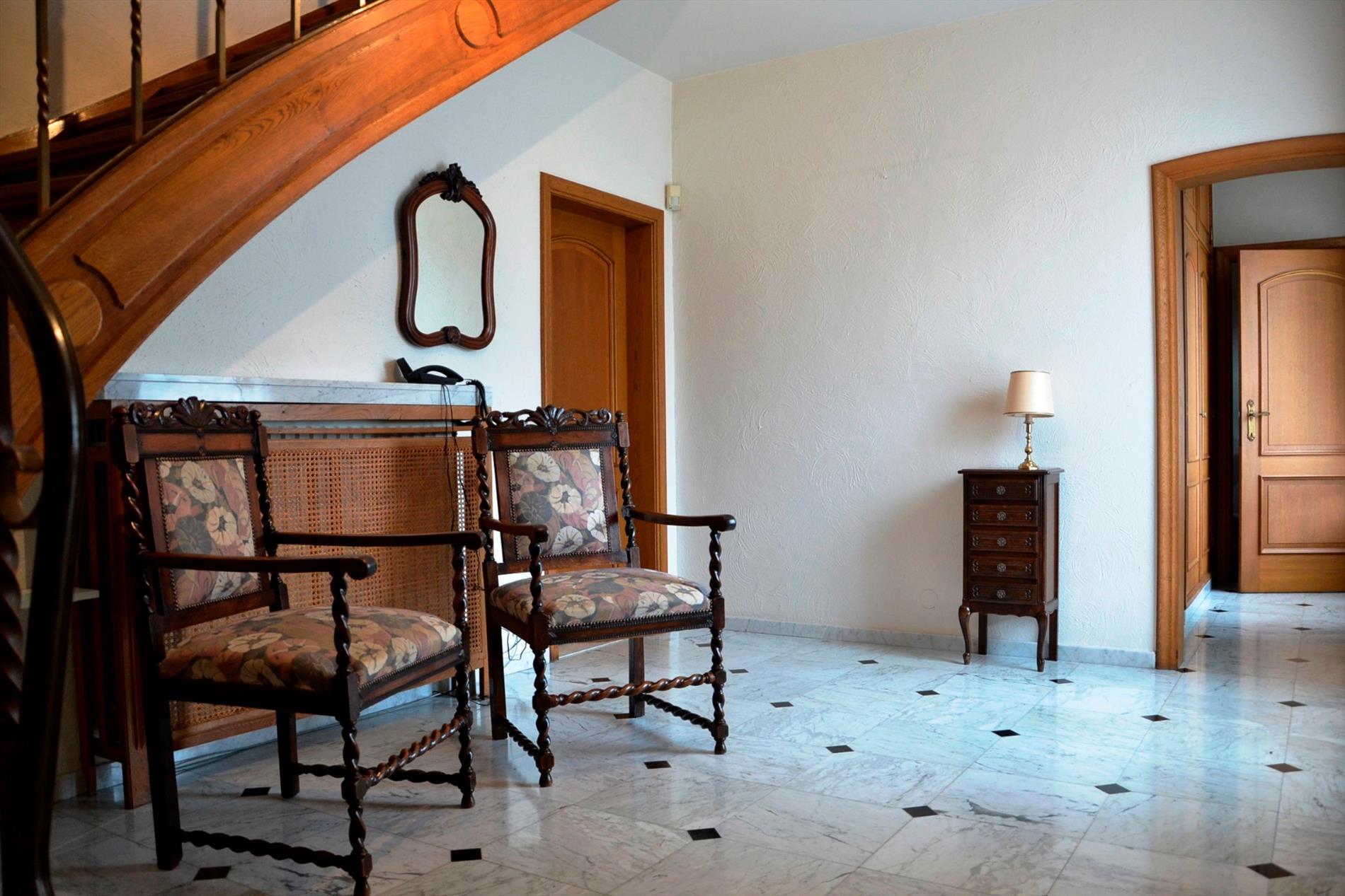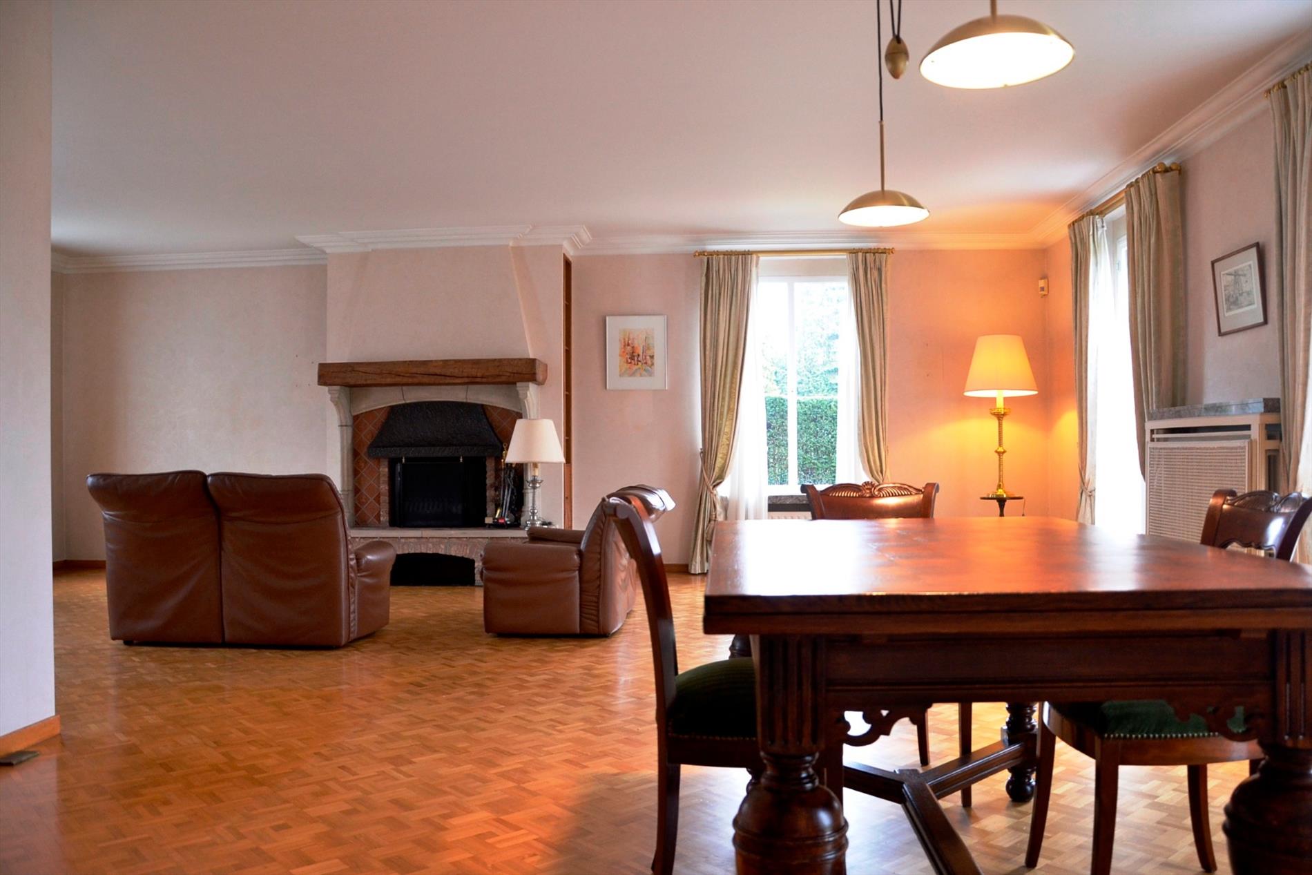 Royale inkomhal 22m² met vestiaire en gastentoilet, een leefruimte 65m² met open haard. Aansluitend de eetkamer is er een woonkeuken 24m² met achteringang naar de tuin met overdekt terras en een praktische voorraadkelder. Tevens is er een bureel anex slaapkamer met aparte douchekamer en toilet. De inpandige garage 45m² is geschikt voor 2 wagens en voorzien van 2 automatische poorten. Op de 1e verdieping is er een overloop met apart toilet, 5 slaapkamers (32m², 22m², 20m², 19m² en 17 m²) voorzien van een parketvloer, ingemaakte kastenwand. Een comfortabele badkamer 11 m², een dressing anex linnenkamer 11m². Een 6e kamer kan eventueel ingericht worden als bureel of extra slaapkamer. In de zuidwest georiënteerde tuin is het aangenaam vertoeven in een oase van rust aangezien de ... woning in een doodlopende straat is gelegen. Ideaal voor vrije beroepen, kangoeroewoning, etc Lees meer Verberg
