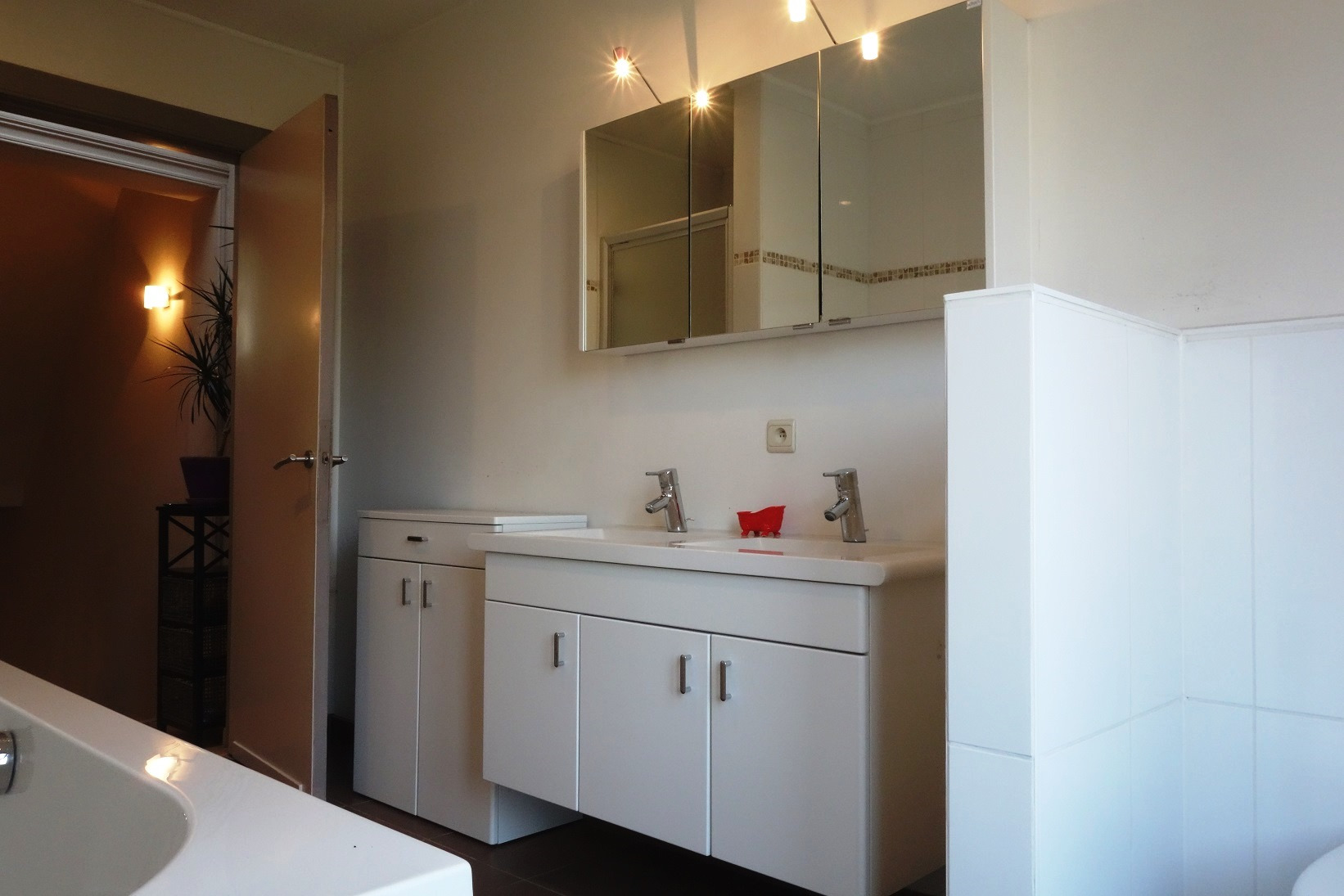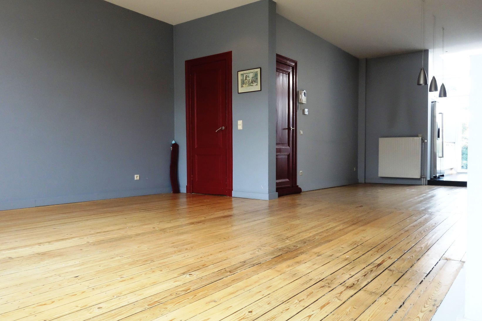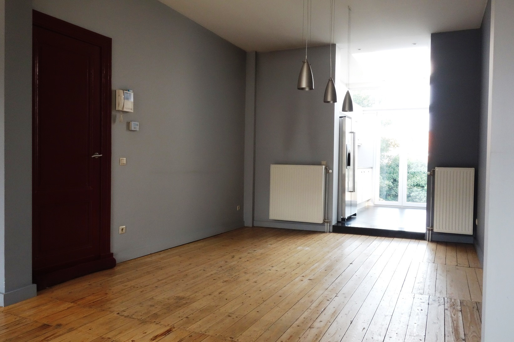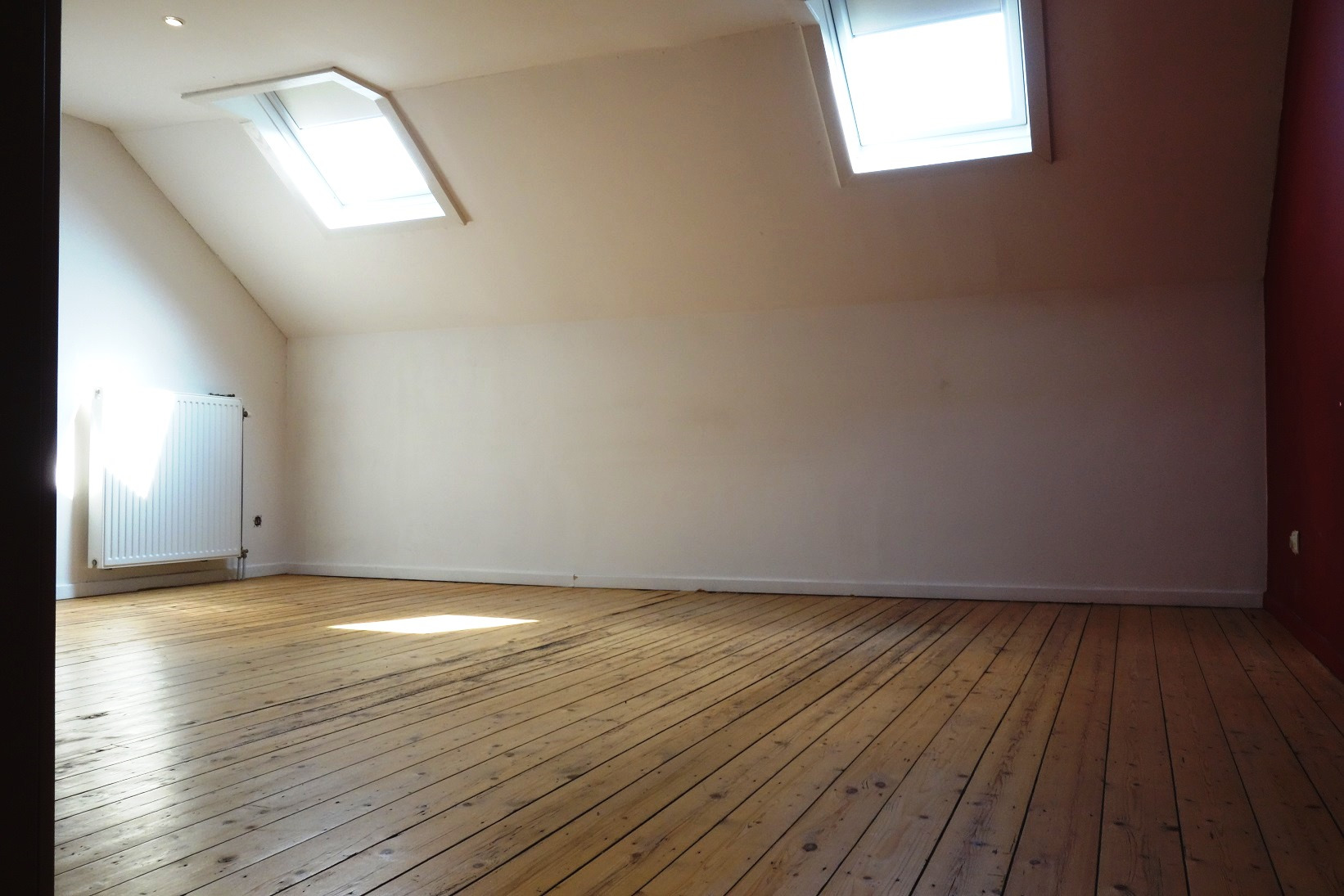 Op de eerste verdieping bevindt zich de woonkamer 42m² op houten vloer. Aaneengesloten is er de open keuken die volledig werd ingericht met onder andere Amerikaanse koelkast met vriesvak, dubbele spoeltafel en een lichtkoepel voor optimaal lichtinval. De badkamer bevindt zich op een tussenverdieping en is ingericht met ligbad, dubbele lavabo, toilet en douche. Op de tweede verdieping heeft u toegang tot de 2 slaapkamers (13m² en 27m²) waarvan 1 slaapkamer uitgerust is met airco. Het dak werd mee vernieuwd. De casco-commerciële ruimte is geschikt voor een winkel, kantoor, kinderopvang, etc. Er zijn twee meterkasten: 1 voor de handelsruimte en 1 voor het private woongedeelte.