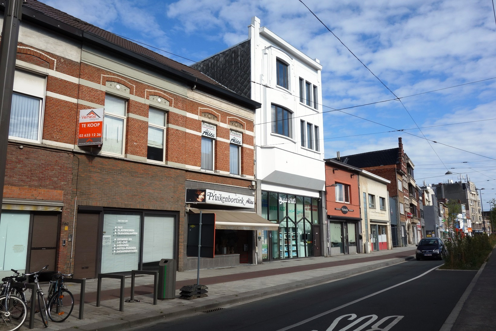 Deze handelswoning is gelegen langsheen de drukke winkelstraat in het centrum van Merksem. Het gelijkvloers bestaat uit een handelsruimte 72m² met daarboven een woongelegenheid. Het woongedeelte werd vernieuwd in 2008.