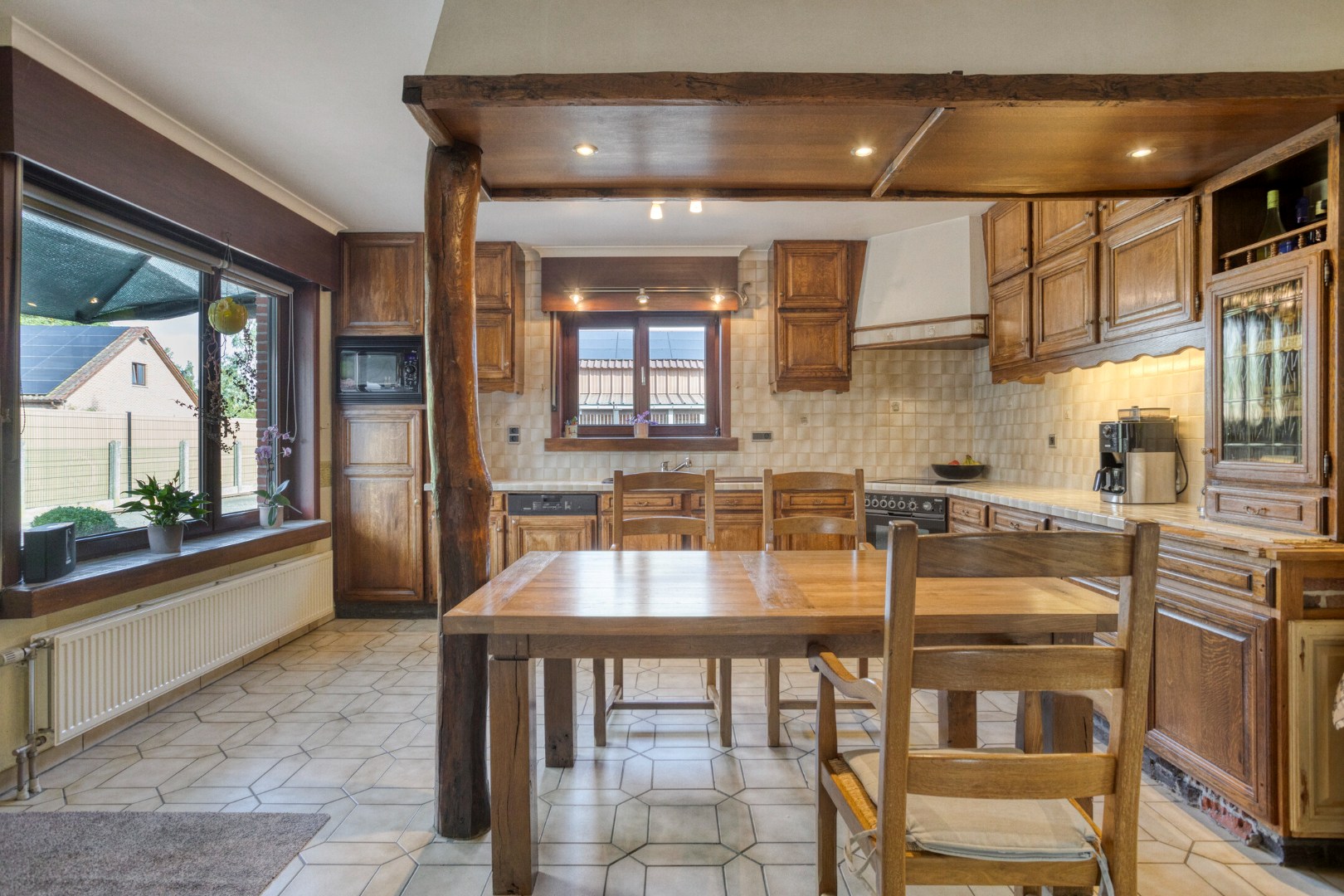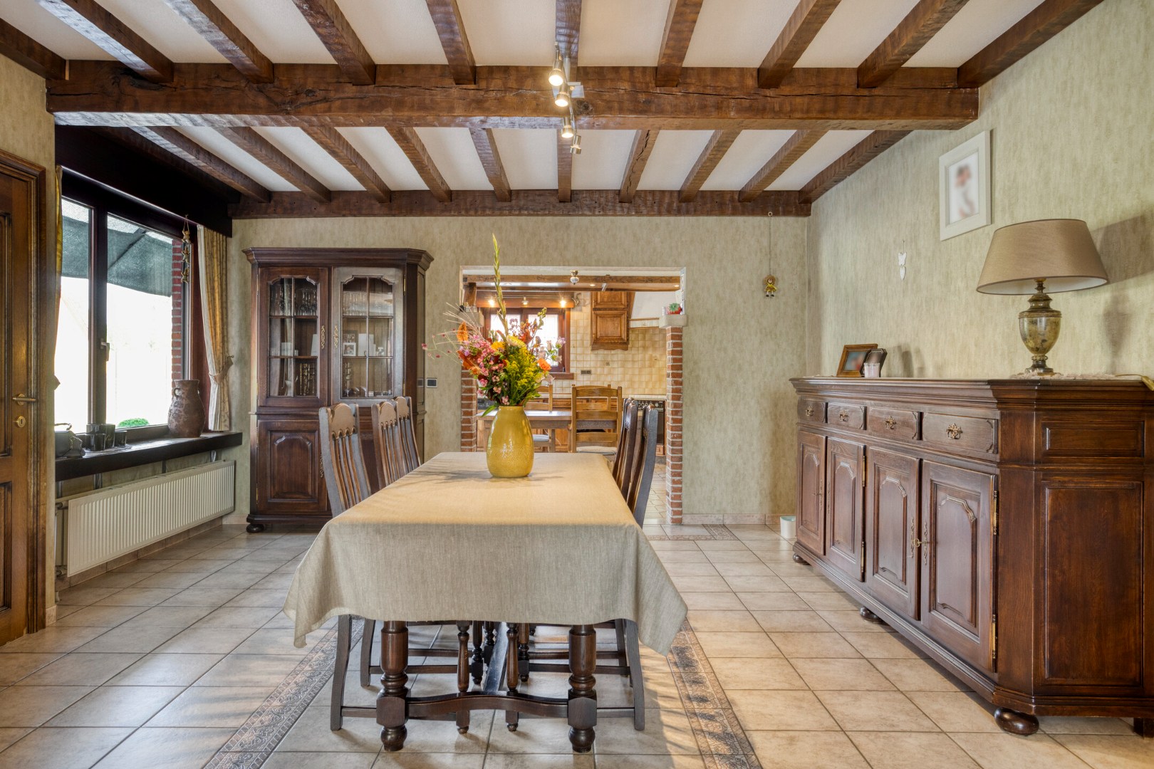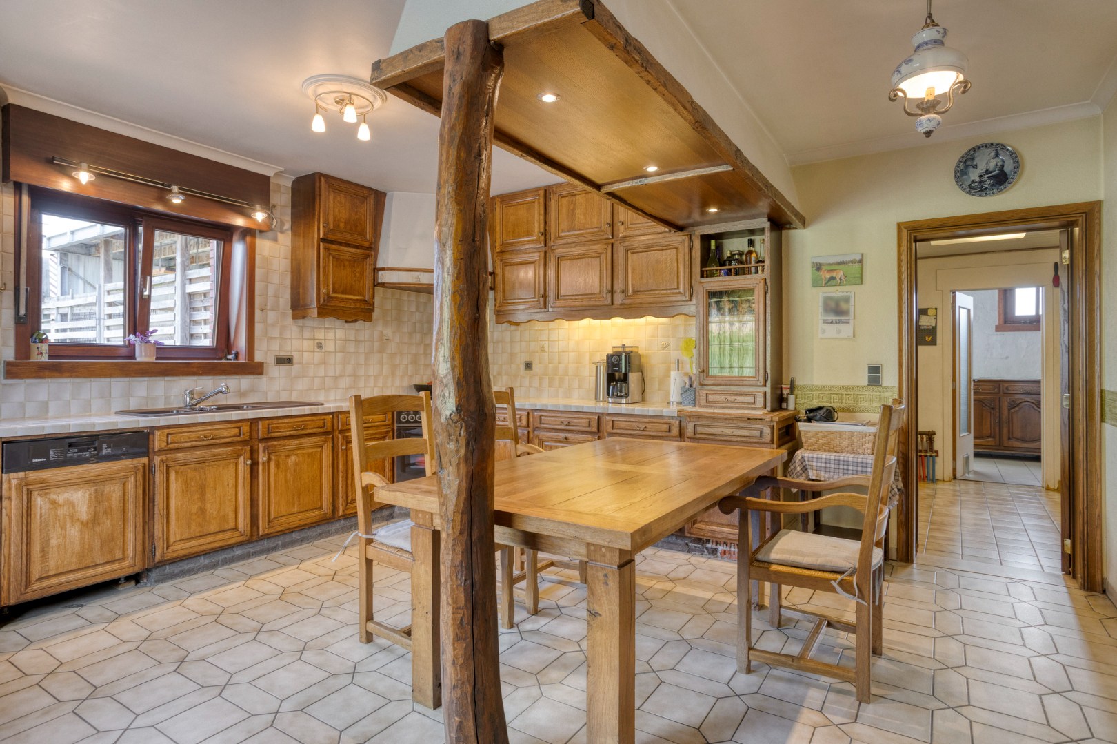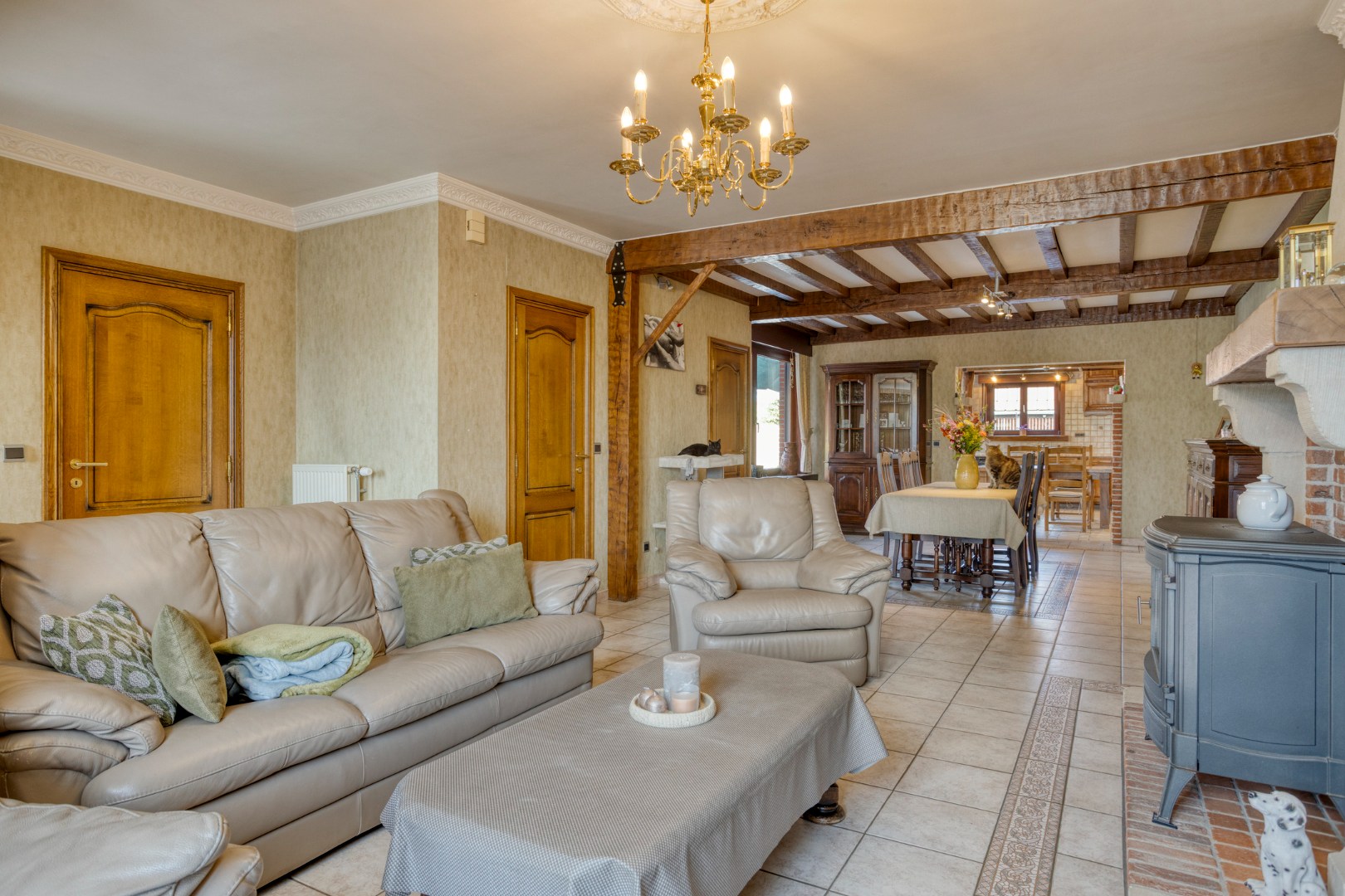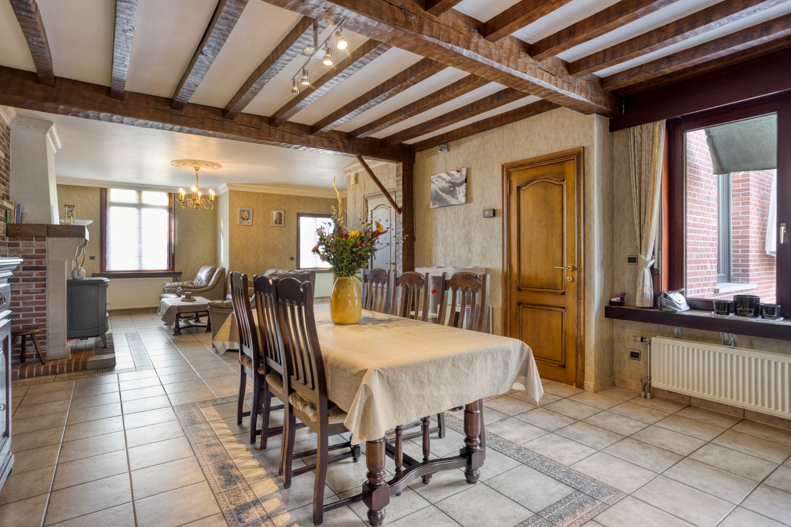 De woning (ca.309m²)verwelkomt u met een inkomhal die toegang geeft tot een aangename leefruimte met zit- en eetkamer en een volledig ingerichte keuken. Daarnaast beschikt het gelijkvloers over een apart bureel, een wasplaats, een aparte badkamer, een bergplaats met toegang tot riante zolder. Op de eerste verdieping bevindt zich de nachthal met apart toilet en vier volwaardige slaapkamers, ideaal voor een gezin of combinatie wonen/werken.