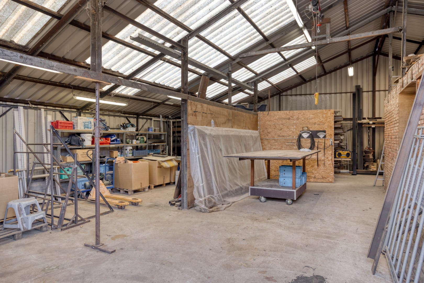 Daarnaast zijn er magazijnruimtes (ca.120m²) die extra mogelijkheden bieden voor stockage of uitbreiding van de activiteiten. Het geheel is bijzonder geschikt voor vrije beroepers, zelfstandigen of ondernemers die een combinatie van wonen, werken en opslag zoeken.