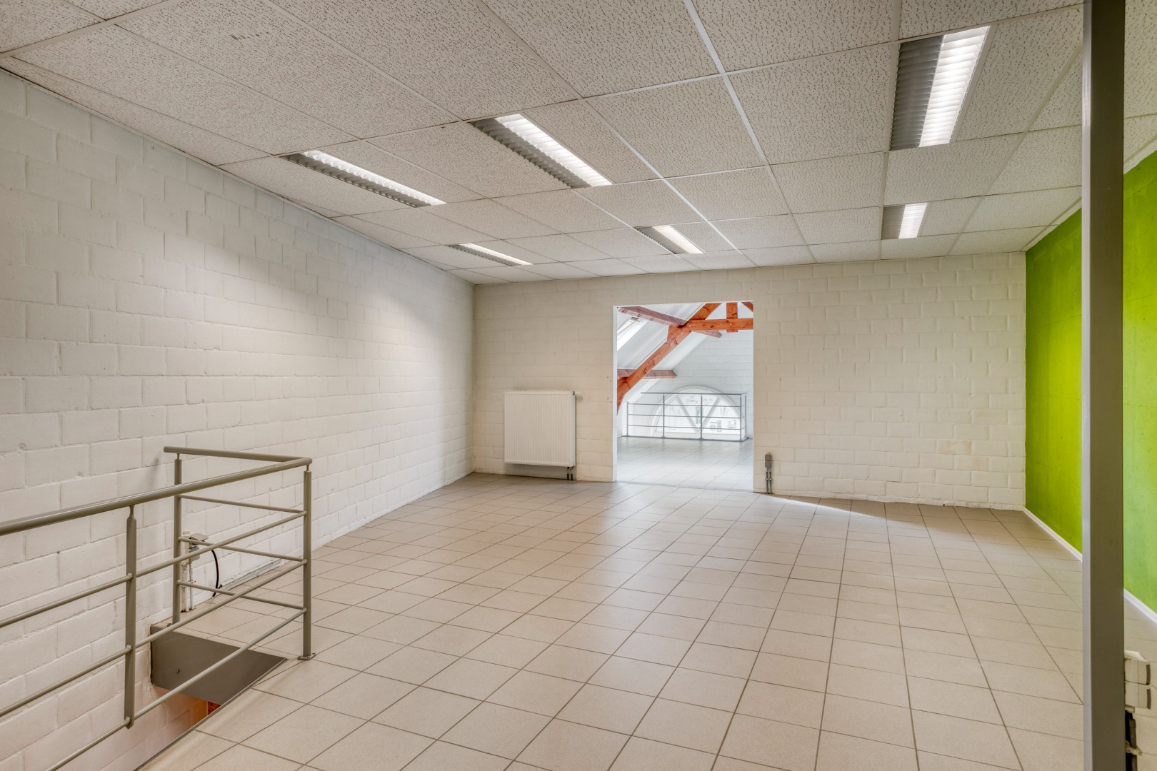 De kantoorruimte (ca.137m²) bestaat op het gelijkvloers uit een multifunctioneel kantoor (ca. 72m²) met zijdelingse inkom, kitchenette met spoelbak, kastenwand, en een apart toilet met handenwasser. Een vaste trap leidt naar de eerste verdieping (ca. 67m²) waar een ... lichtrijke landschapsruimte perfect kan dienen als extra bureel, vergaderruimte of toonzaal. Dankzij de vele raampartijen geniet u overal van een overvloed aan natuurlijk licht. De afwerking met tegelvloer en centrale verwarming op aardgas met radiatoren zorgen voor extra comfort.
