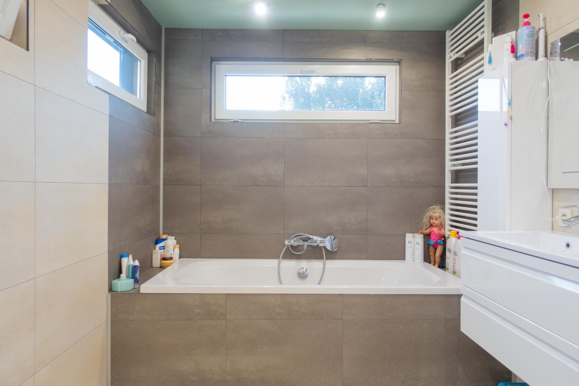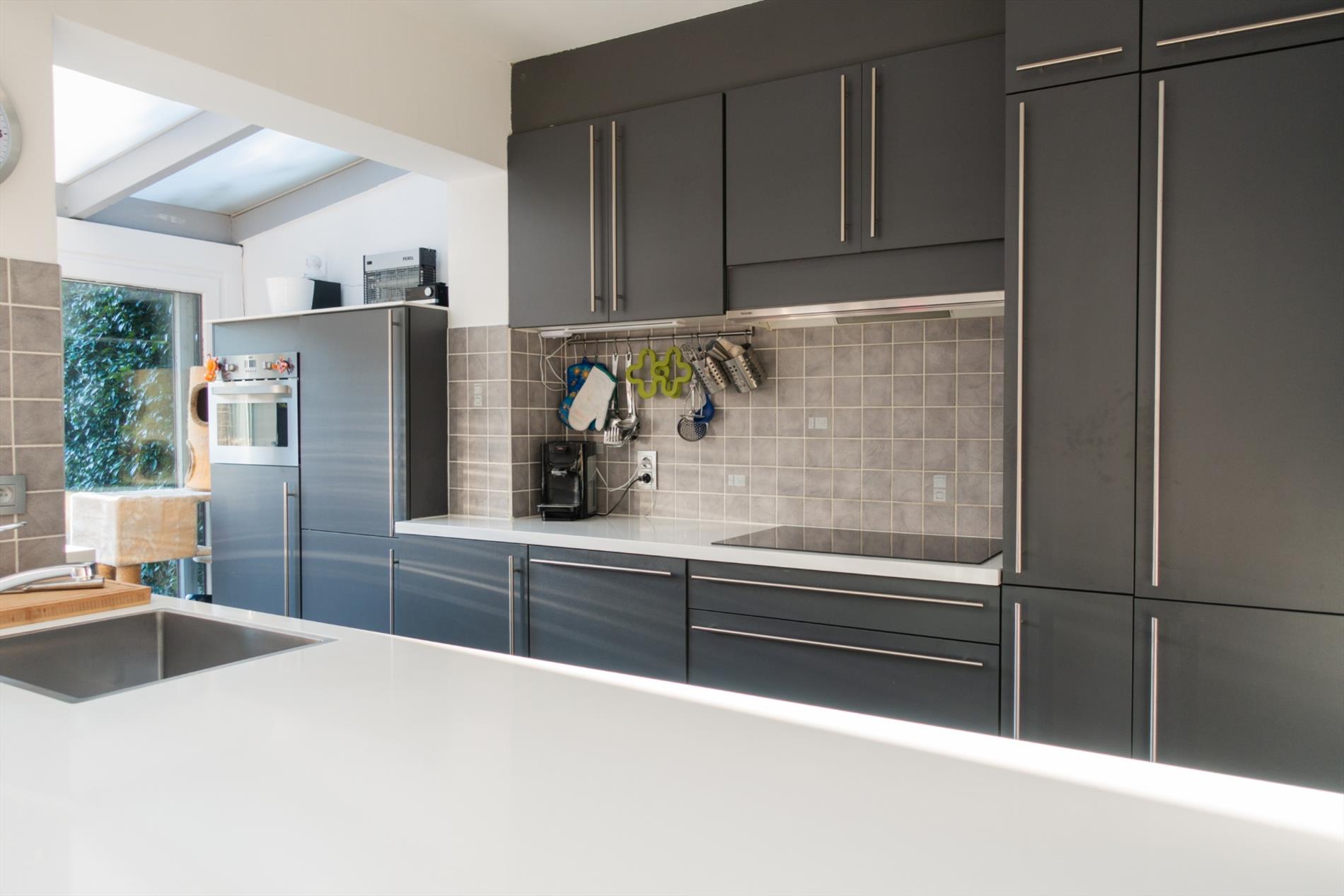 Deze comfortabele gezinswoning is gelegen in een rustige heraangelegde straat met in de nabijheid diverse winkels, scholen, het openbaar vervoer en parken. Via de lichtrijke inkomhal betreden we de woning dewelke uitgeeft in een open woon- en eetkamer 28m² met knusse zithoek. Aansluitend is er een ingerichte leefkeuken 22m² afgewerkt met kwalitatieve materialen en toestellen. De keuken loopt naadloos door naar de veranda die uitgeeft op het terras en de aangelegde tuin met vijver en berging. Op de 1e verdieping bevinden zich de 2 slaapkamers (11m² en 17m², waarvan één met eigen dressing) en de royale gezinsbadkamer 12m² met ligbad, inloopdouche, dubbele lavabo en aansluitingen voor wasmachine en droogkast. De zolder 25m² die verder af te werken is, bereiken we via een vaste trap. De woning werd grondig gerenoveerd met aandacht voor kwaliteit en duurzaamheid