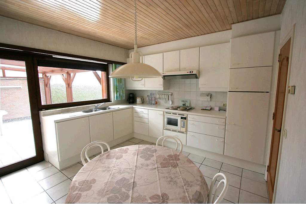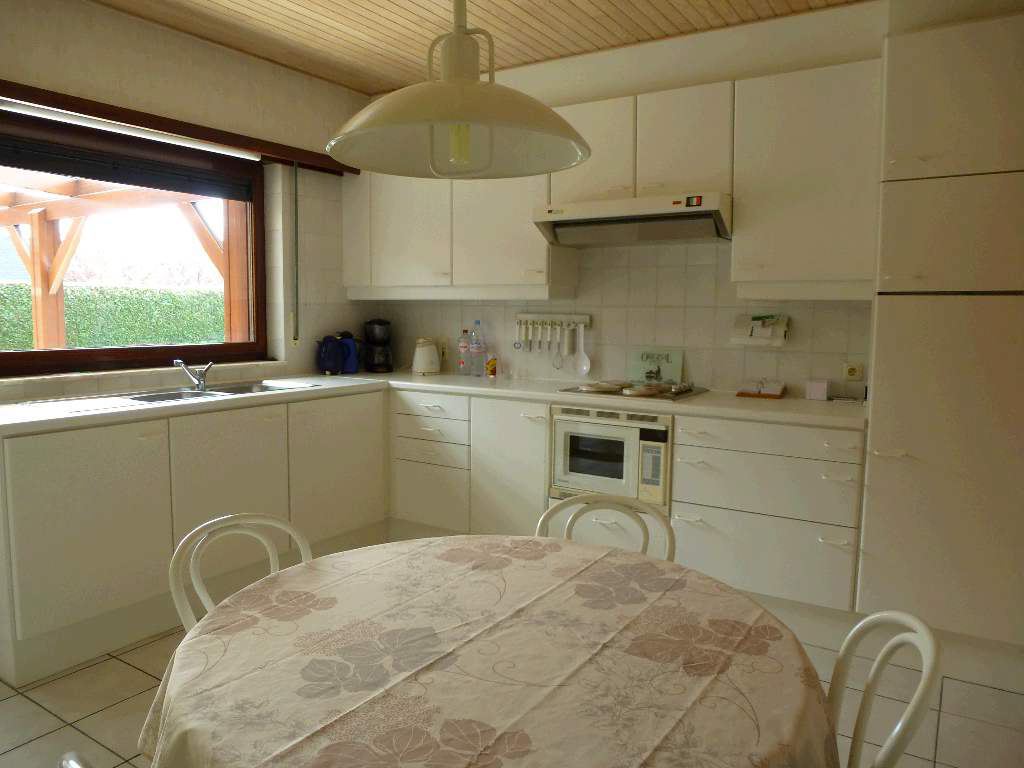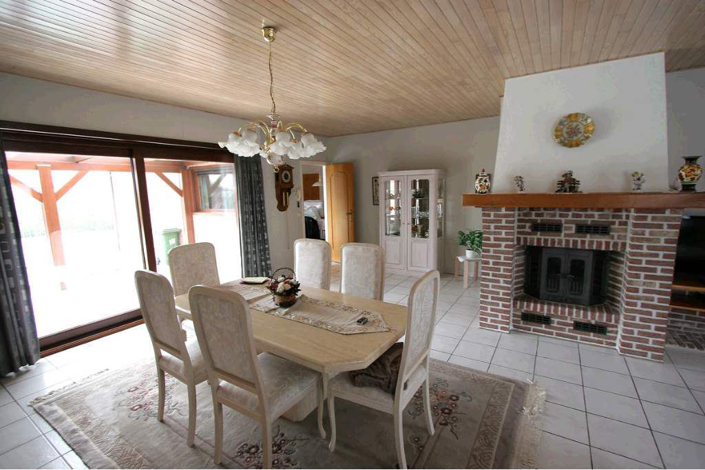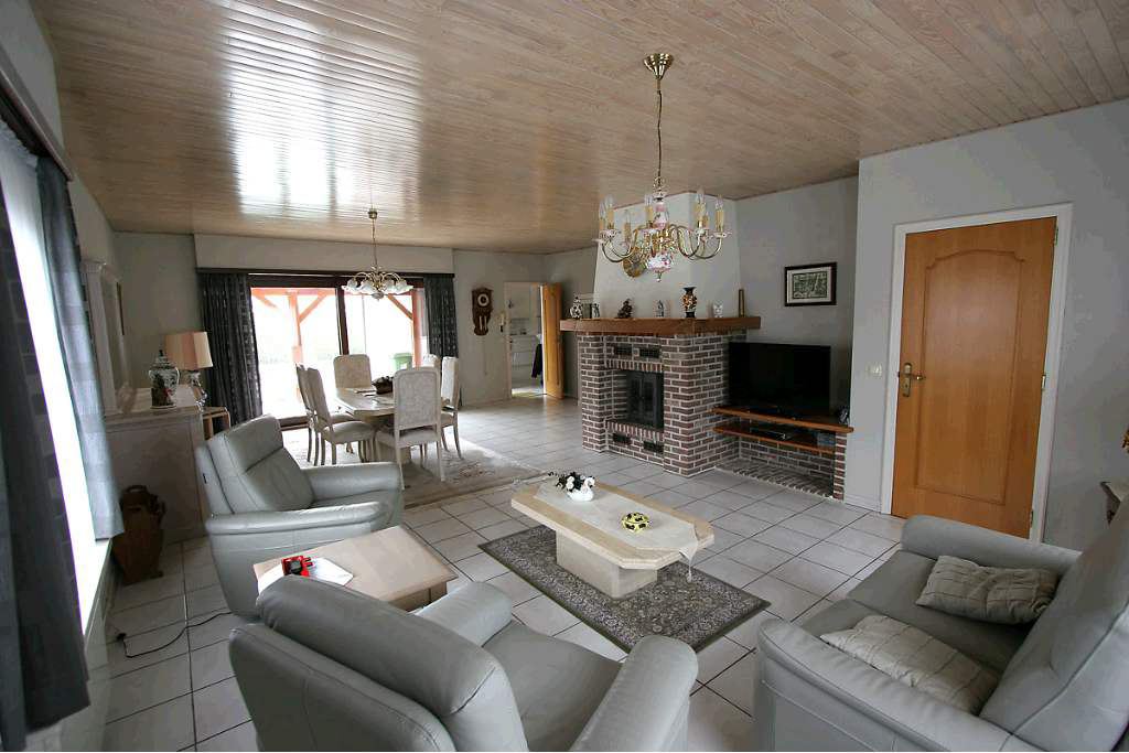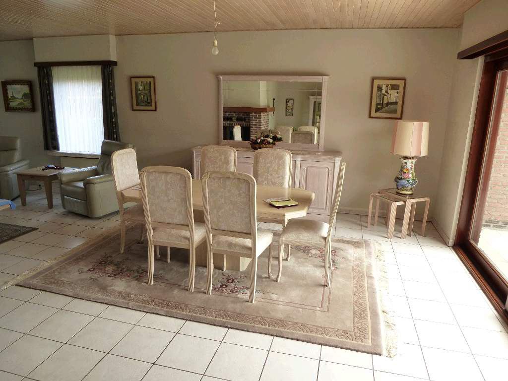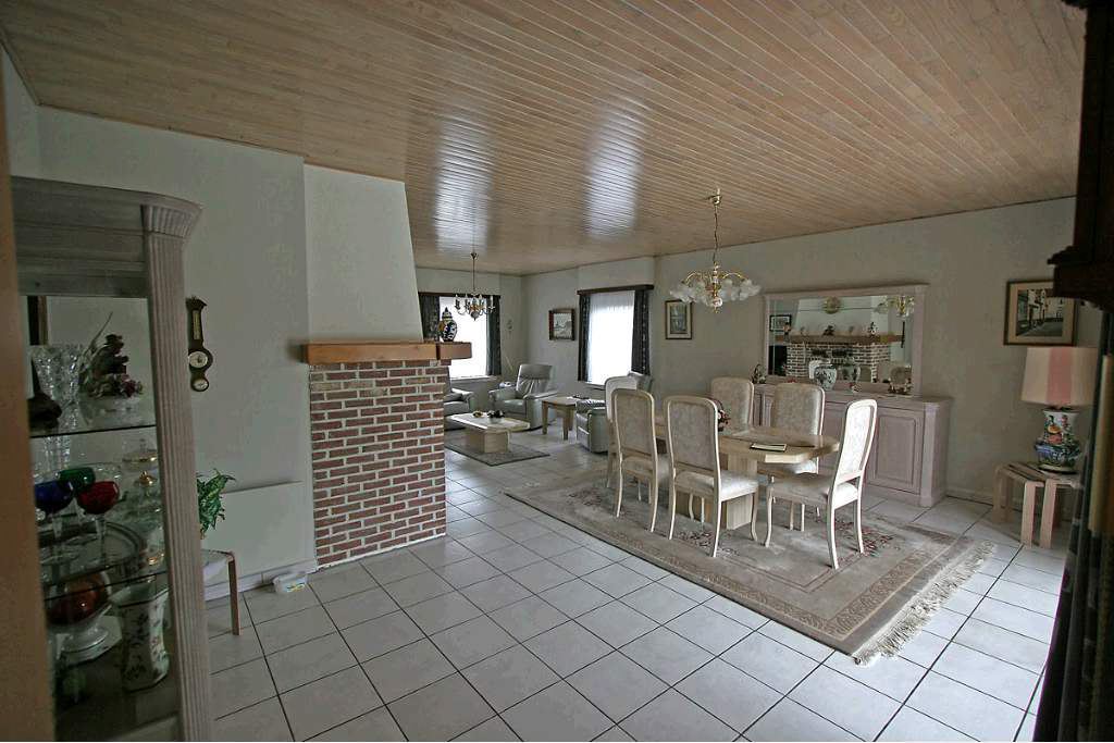 Zeer goed onderhouden gelijkvloers landhuis op 693 m² Centraal gelegen in een woonwijk nabij de diverse uitvalswegen. Voortuin met oprit voor 2 wagens. Inkomhal met vestiairekast en gastentoilet, woon- en eetkamer ca43 m² voorzien van OH casette en met schuifraam naar het overdekt terras. Leefkeuken met aansluitend koele berging, 3 slaapkamers ca 16m², 14m² en 12m². Inpandige garage voor 2 wagens. Zolder met mogelijk tot uitbreiding. Omheinde ZW tuin met tuinhuis en hagen. Wg, Gdv, Gvkr, Vv, Vg. EPC: 706 kWh/m² UC: 1357901.