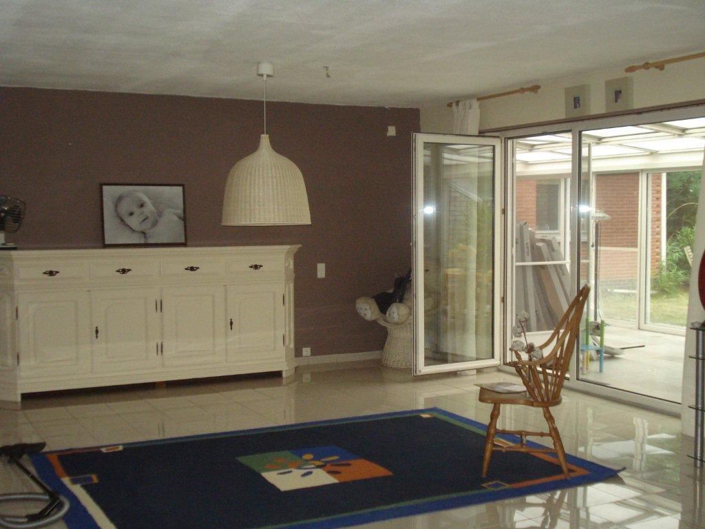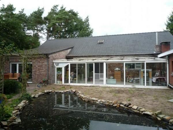Deels vernieuwde vrijstaande woning op een perceel van ca.2220m². Indeling: inkom, woonkamer ca.72m², ingerichte keuken 20m² met aansluitend een veranda ca.32m². slaapkamer ca.30m² met ingemaakte kastenwand (7m), 2e slaapkamer ca.15m², wasplaats met ing kastenwand, badkamer met ligbad, garage ca.50m² met technische installatie. 3e slaapkamer (ca.14m²) met mogelijkheid tot extra badkamer. Verdieping: mezzanine met vide, 3 slaapkamers (9m², 9m² en 30m²). Bijzonderheden: groene woonomgeving, veel lichtinval, ruime kamers, tuinhuis, vijverpartij, verzorgde gevel. Wg, Gdv, Gvv, Gvkr, Vg.