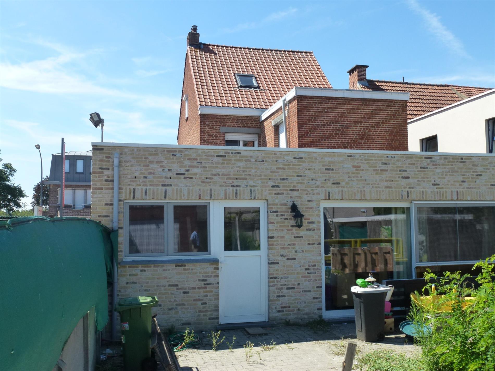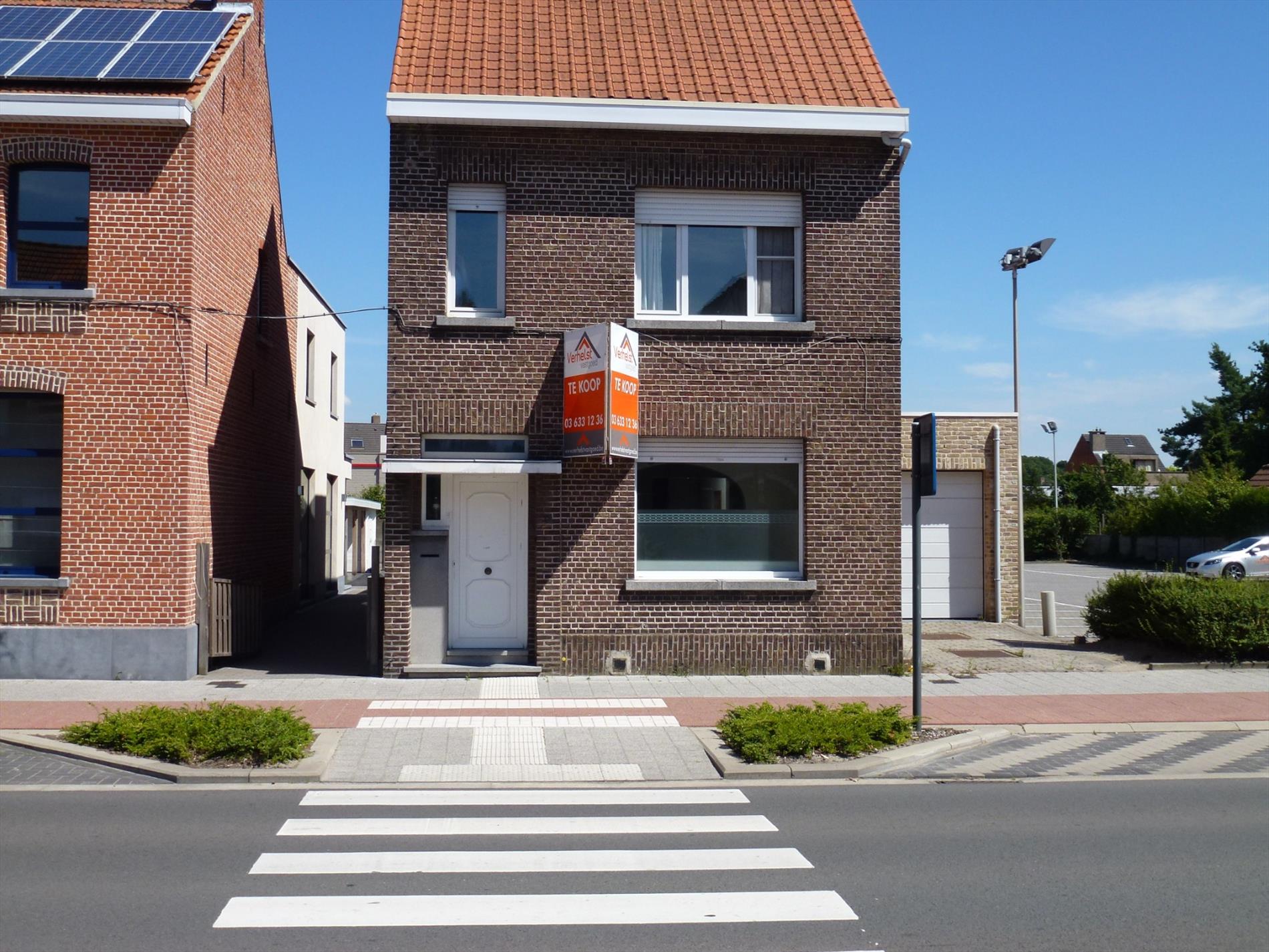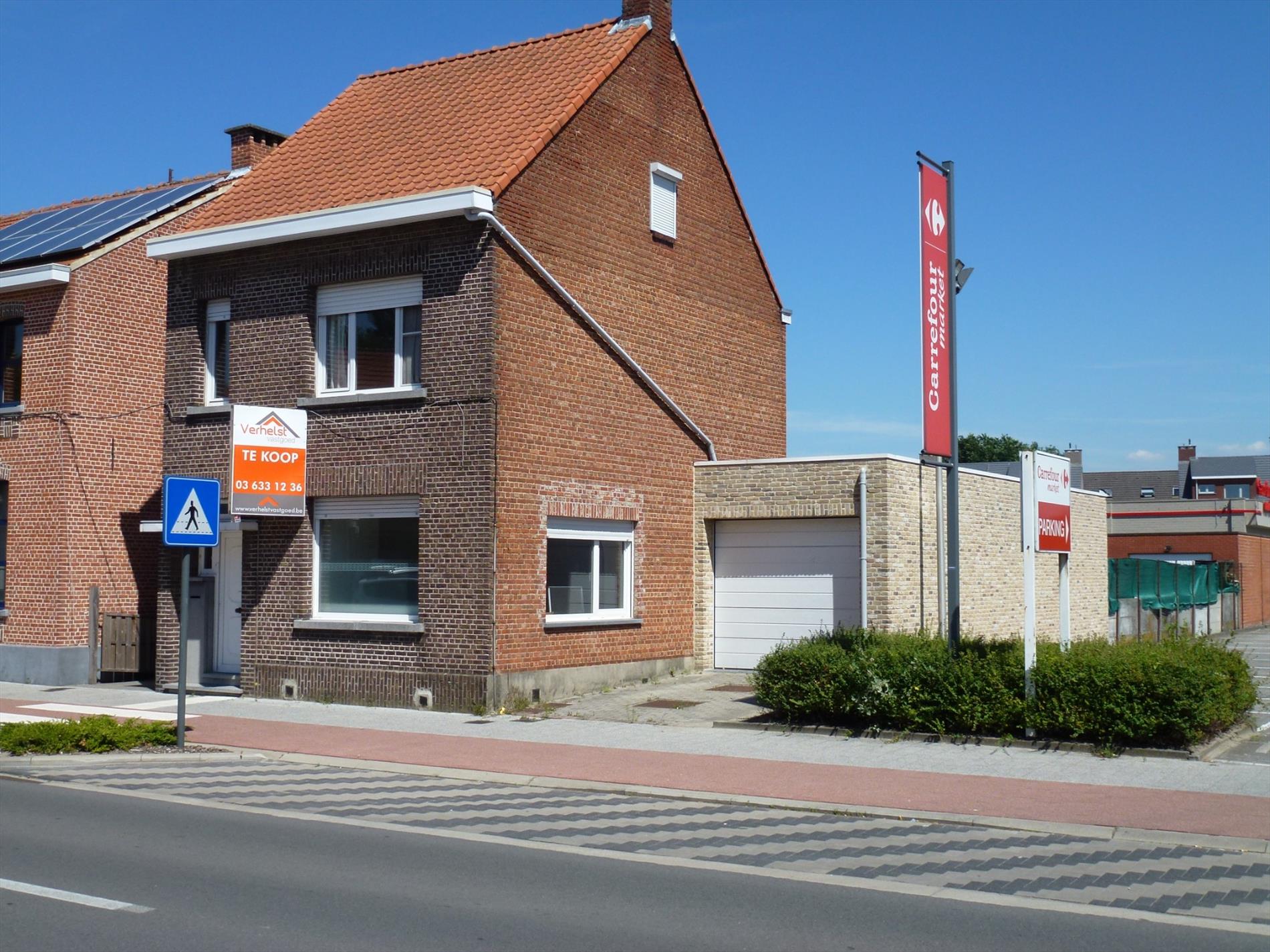 Gunstig gelegen halfopen woonhuis op 320m². Indeling: inkom op authentieke tegelvoer, een leefruimte 25m² anex bureel aan de straatzijde, een hedendaags ingerichte halfopen keuken met aansluitend een woon- en eetkamer met schuiframen naar de tuin. Inpandige garage 20m² met oprijlaan, aparte wasplaats met achteringang, sas met gastentoilet, kelder met technische ruimte. Verd 1: nachthal, vernieuwde badkamer voorzien van ligbad, douche en toilet, 2 slaapkamers op plankenvloer (12m² en 13m²). Verd 2: multifunctionele zolderkamer 30m². In de tuin met terras is er tevens een bijgebouw.