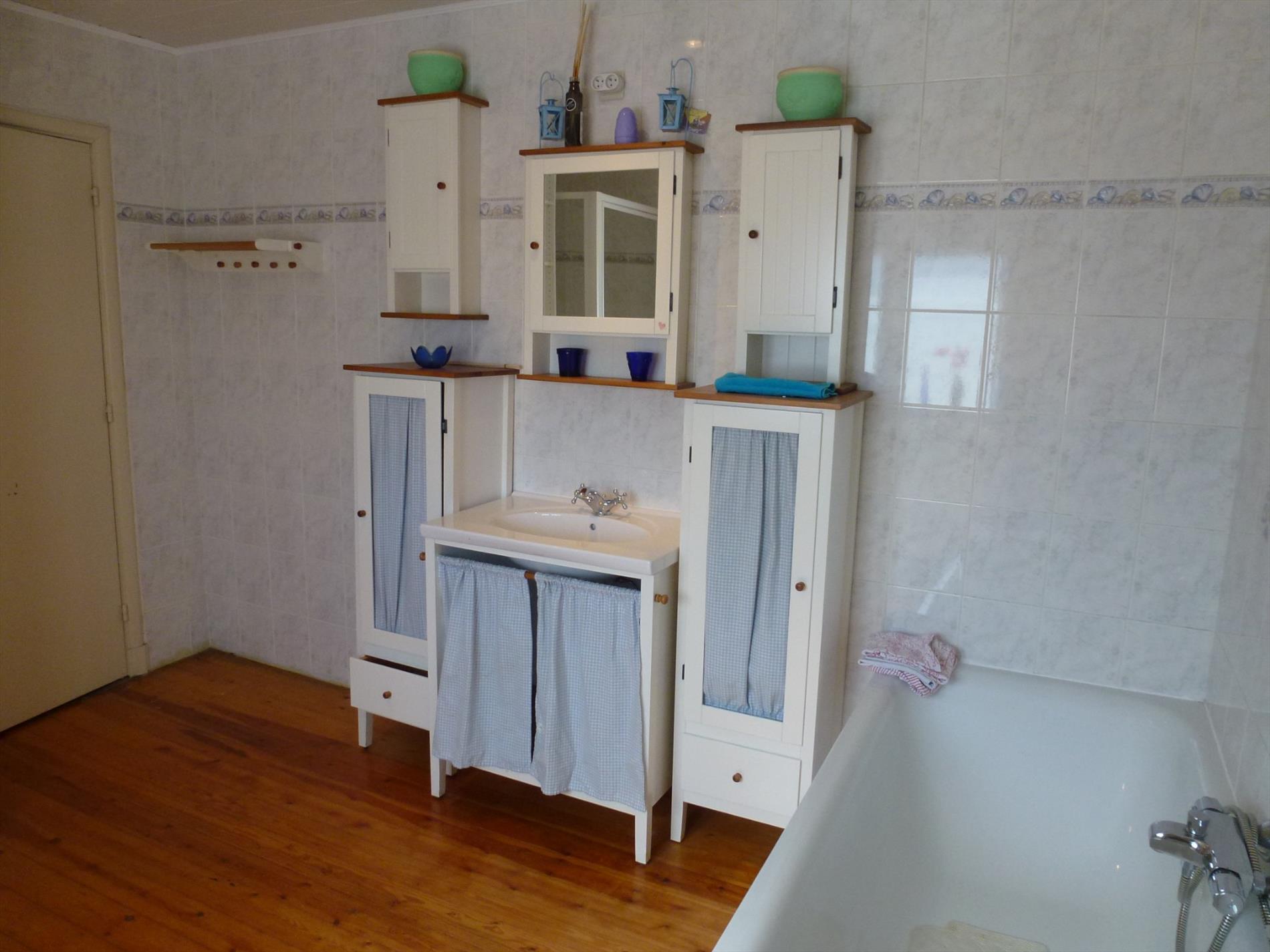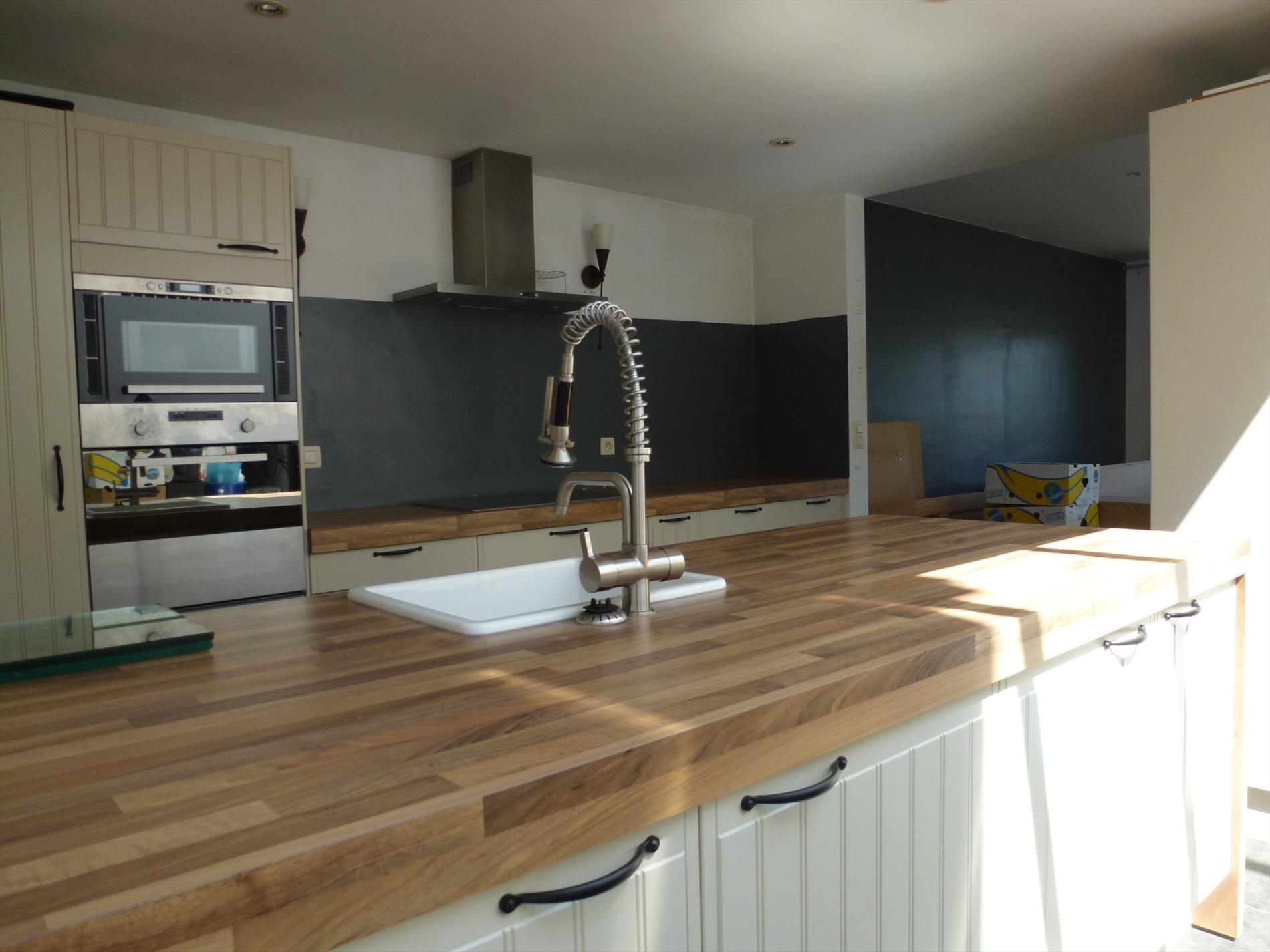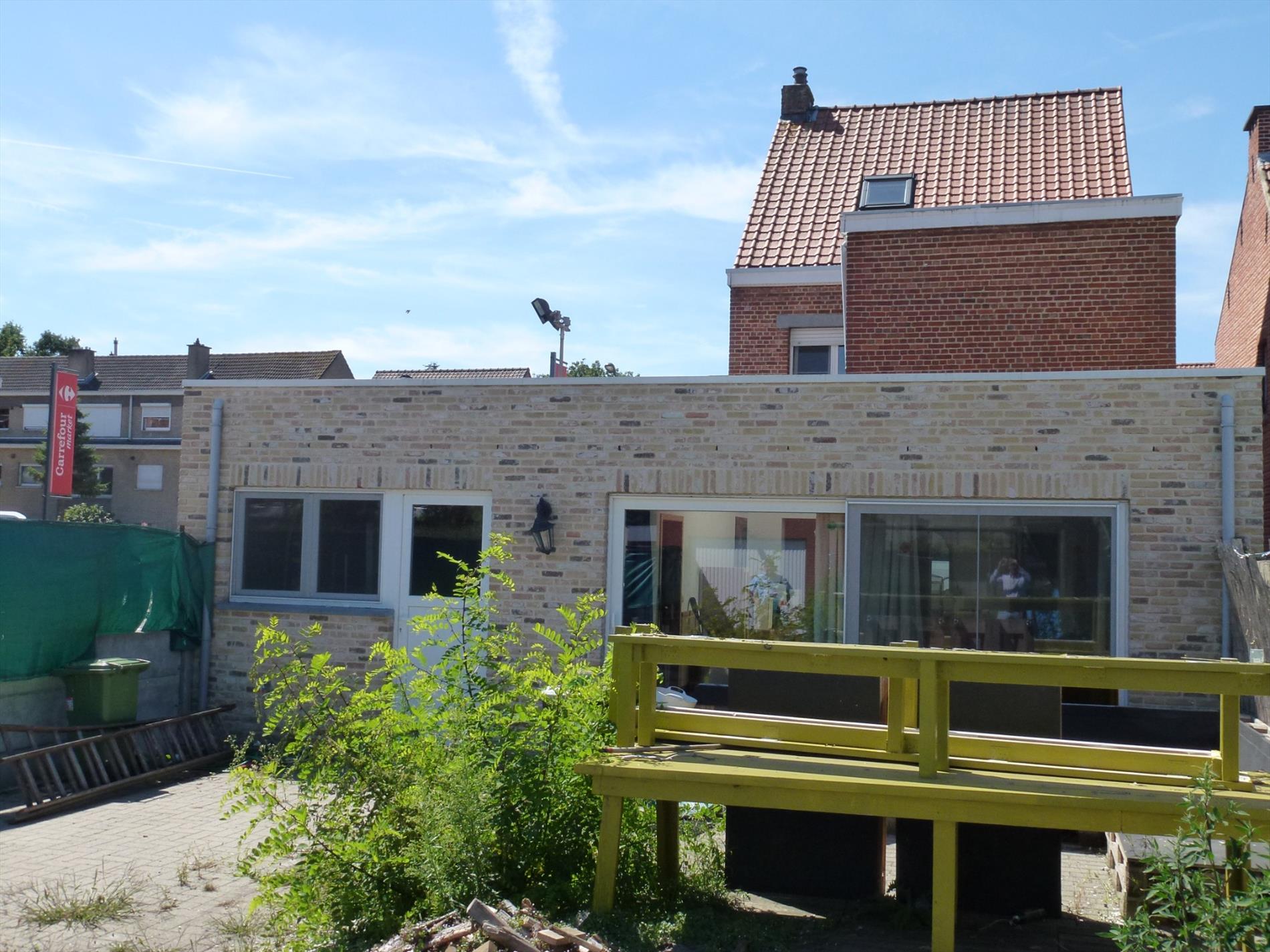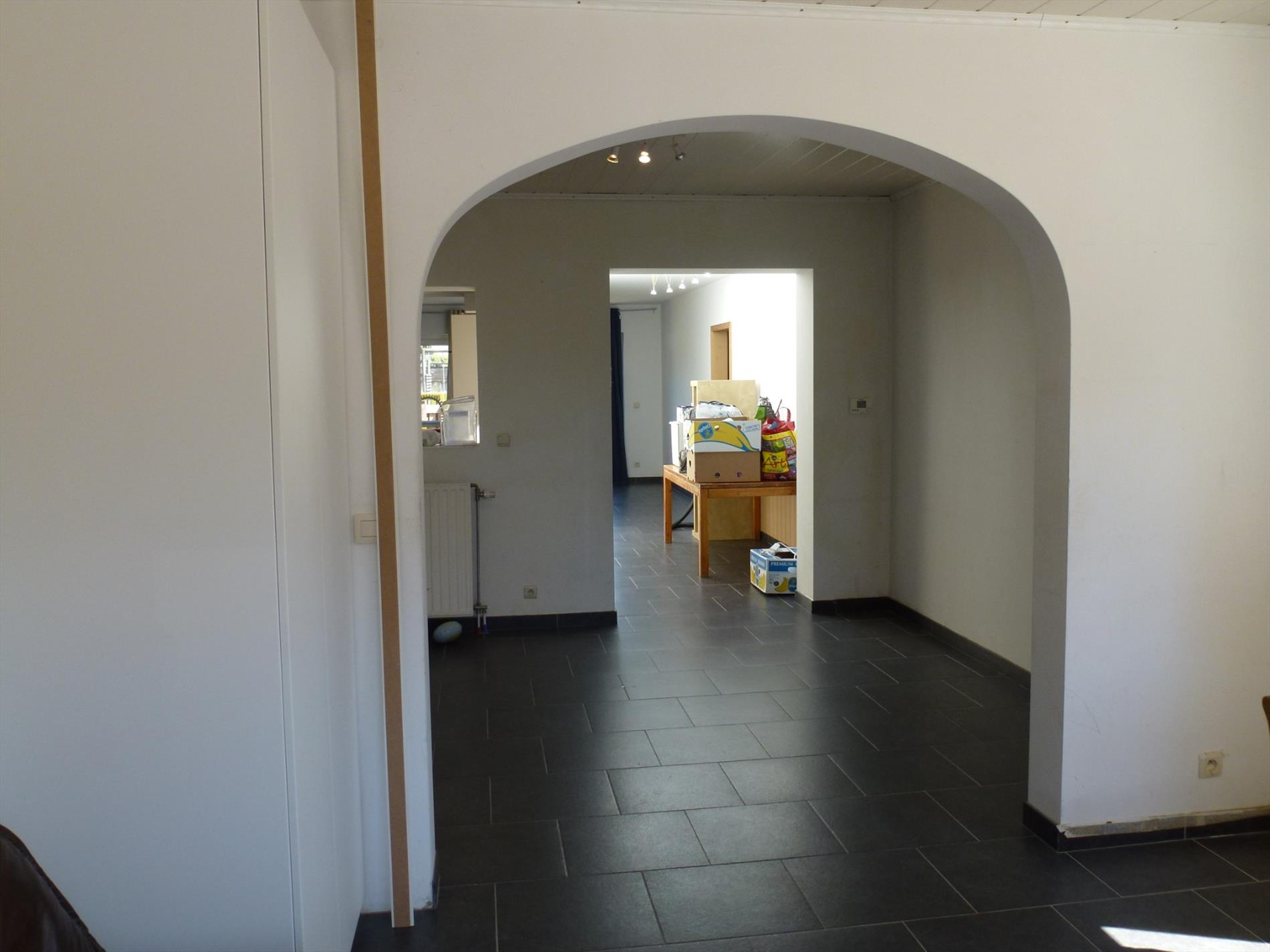 Gunstig gelegen halfopen woonhuis op 320m². Indeling: inkom op authentieke tegelvoer, een leefruimte 25m² anex bureel aan de straatzijde, een hedendaags ingerichte halfopen keuken met aansluitend een woon- en eetkamer met schuiframen naar de tuin. Inpandige garage 20m² met oprijlaan, aparte wasplaats met achteringang, sas met gastentoilet, kelder met technische ruimte. Verd 1: nachthal, vernieuwde badkamer voorzien van ligbad, douche en toilet, 2 slaapkamers op plankenvloer (12m² en 13m²). Verd 2: multifunctionele zolderkamer 30m². In de tuin met terras is er tevens een bijgebouw.
