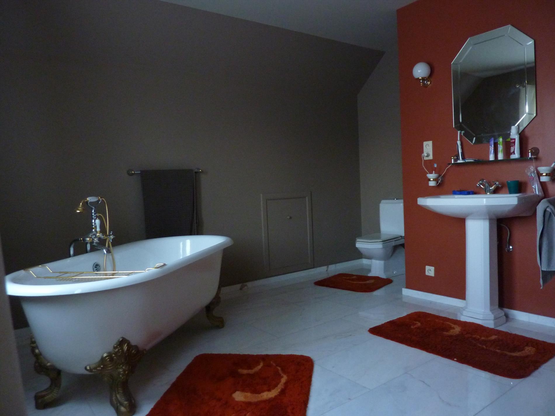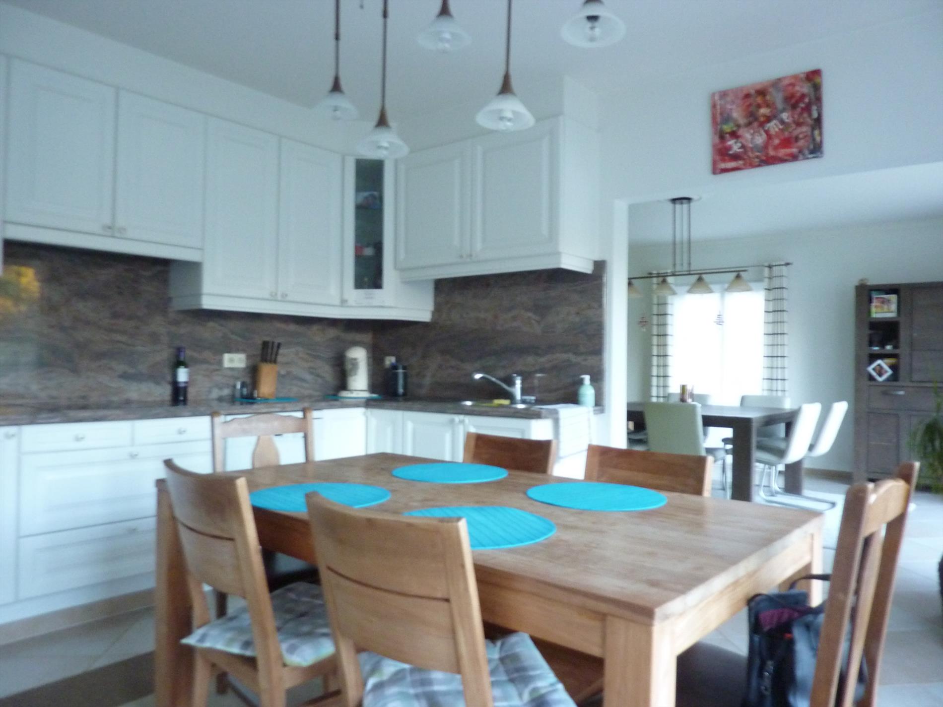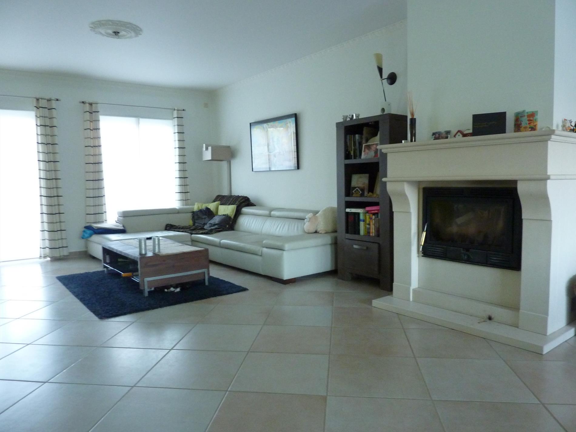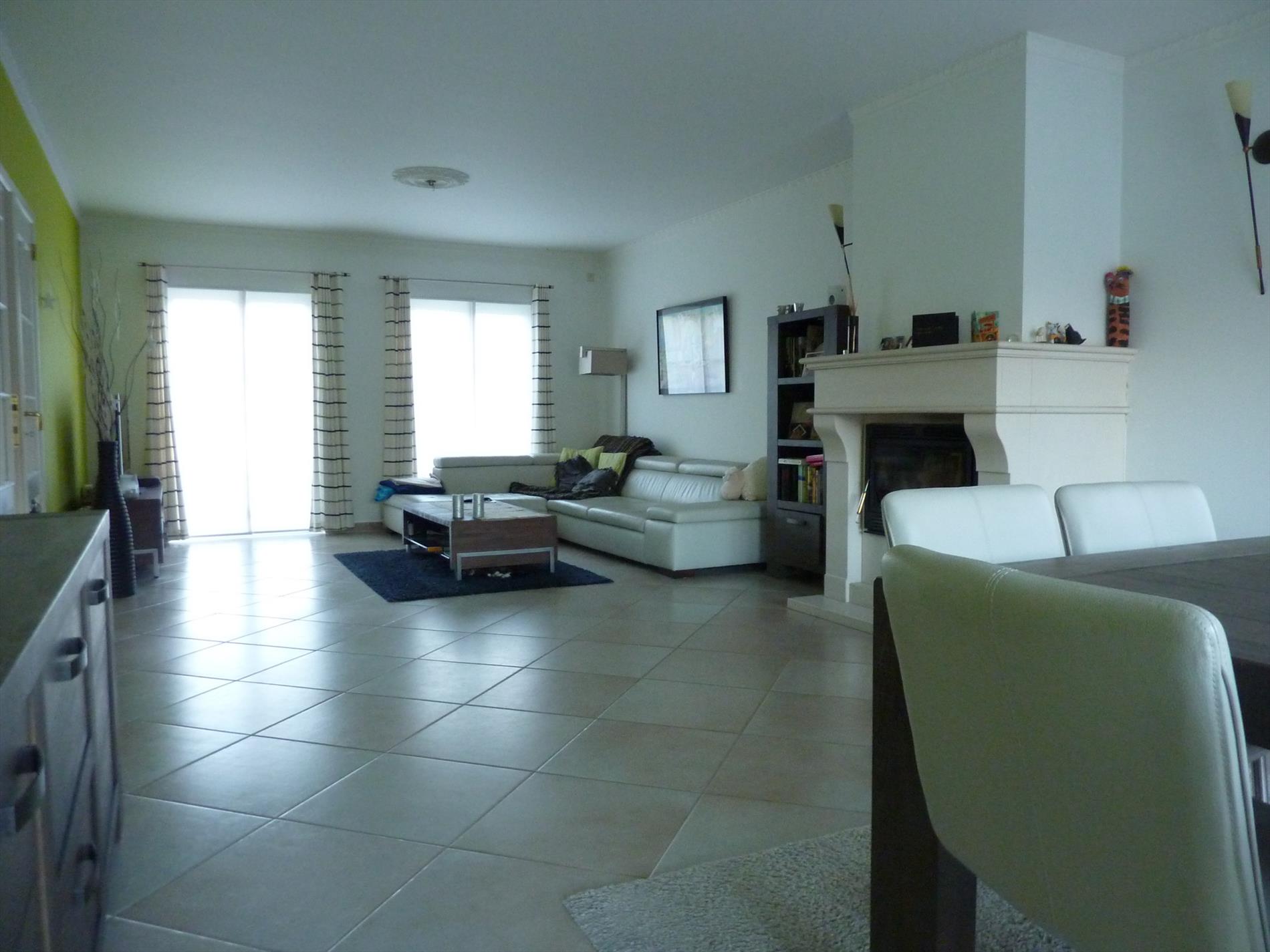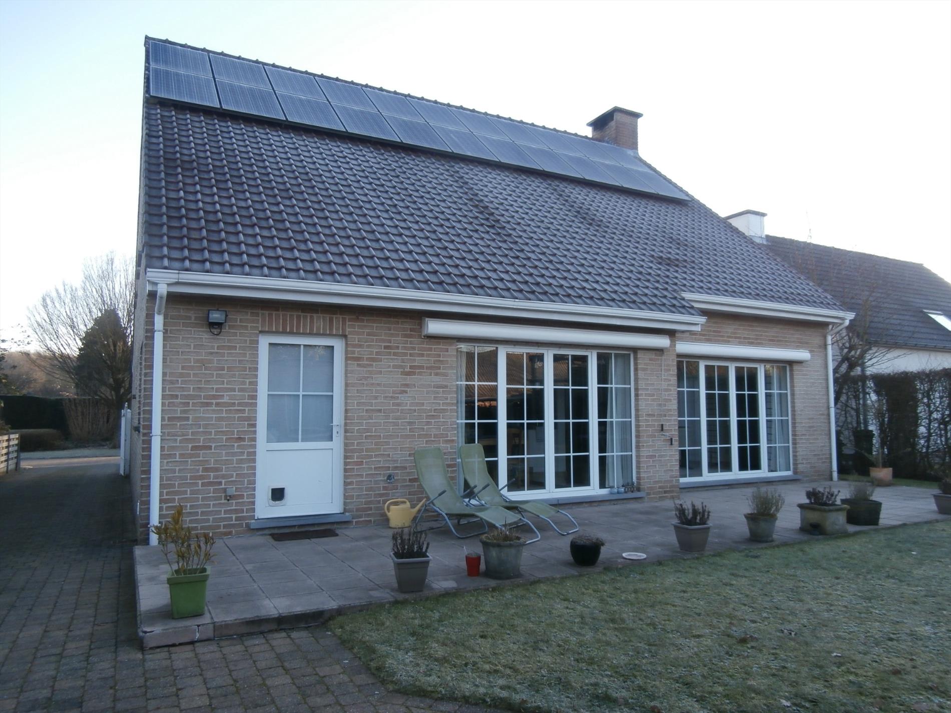 Een gezinswoning gelegen in een doodlopende straat van een kindvriendelijke woonwijk, op een perceel van 682m². Indeling: Imposante inkomhal met vestiaire en een gastentoilet. De multifunctionele kamer nabij de inkom is geschikt als bureel of slaapkamer. De sfeervolle leefruimte 48m² met haardpartij bestaat uit een woon- en eetkamer. Aansluitend vinden we een hedendaagse keuken 18m² met aparte was- en bergplaats voorzien van een douche en toegangsdeur naar de tuin en het terras. De vrijstaande garage in de tuin en de brede oprit zorgt voor extra parkeergelegenheid. De verdieping omvat een nachthal, 3 slaapkamers (16m², 18m² en 20m²) waarvan de hoofdslaapkamer beschikt over een aparte dressing. Er is een comfortabel ingerichte badkamer met vrijstaand design ligbad, dubbele lavabo en toilet. De geïsoleerde zolder biedt tal van mogelijkheden en is bereikbaar via een luik. Bijzonderheden: Zonnepanelen 5.000 Watt met certificaten. Elektrische vloerverwarming op het gelijkvloers en op de verdieping met elektrische radiatoren. ...