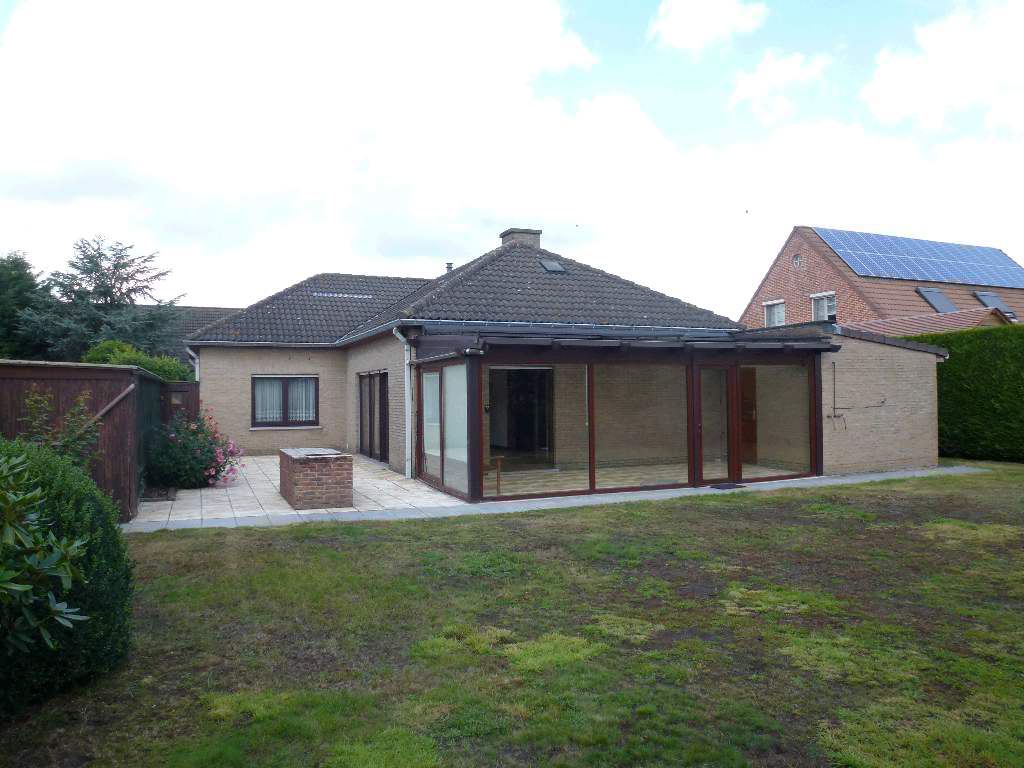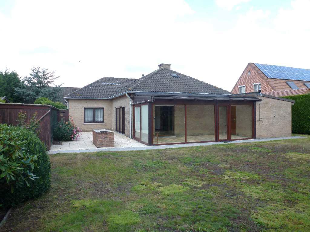 Laagbouw landhuis gelegen op 710m² in een doodlopende straat, kindvriendelijke omgeving. Indeling: inkom met gastentoilet, apart bureel annex 3e slaapkamer, woon- en eetkamer met toegang tot de veranda en terras. Keuken met bergplaats en zij-ingang. Nachthal, 2 slaapkamers (ca.12m²), ingerichte badkamer. Zolderverdieping bereikbaar via vlizotrap vanuit de bergplaats. Garage met oprit. Wg, Vg, Gdv, Gvkr, Gvv. EPC:468 kW/m²jaar UC: 1646308 .