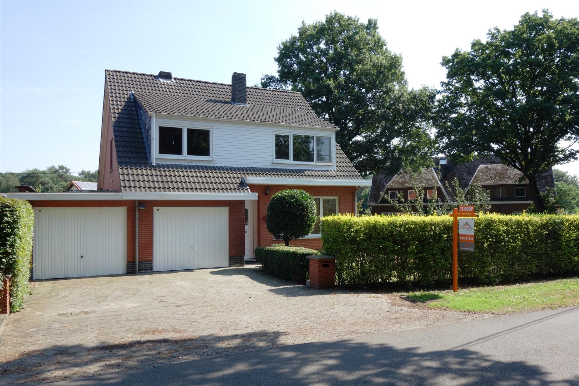 Deze vrijstaande woning met een onderhoudsvriendelijke tuin en ruime 4 slaapkamers is gelegen in een aangename woonwijk. Indeling: Inkomhal met vestiaire en een gastentoilet, een leefruimte met veel natuurlijk lichtinval en een houtkachel in de woonkamer. Er is een vernieuwde keuken met een granieten werkblad en een achteringang naar de tuin. De eerste verdieping omvat 4 slaapkamers (26m², 19m², 16m² en 11m²) met ingemaakte kasten en een comfortabele badkamer bestaande uit een douche, een toilet en een dubbele lavabo. Bijzonderheden: Er is een provisiekelder, een opbergzolder en een dubbele inpandige garage aanwezig. Door de jaren heen zijn er diverse aanpassingswerken aan de woning gebeurd zoals het dak isoleren, het vernieuwen van de ramen (PVC-raamprofielen, isolerende beglazing) en het vervangen van de CV-ketel.