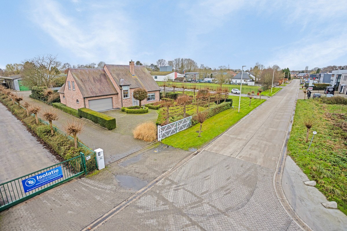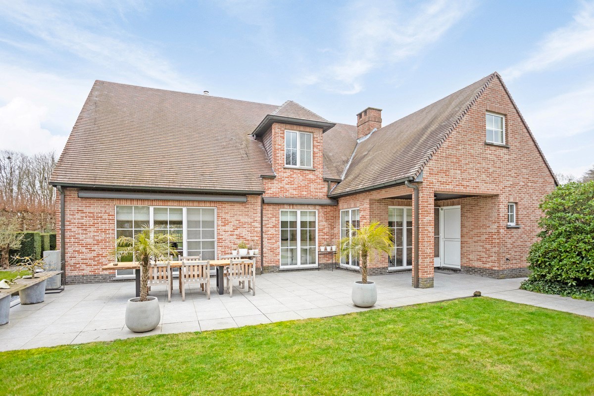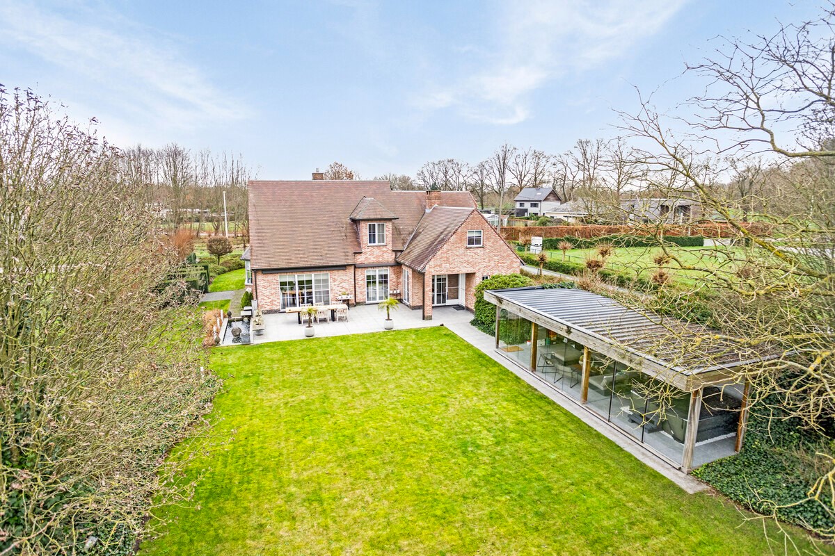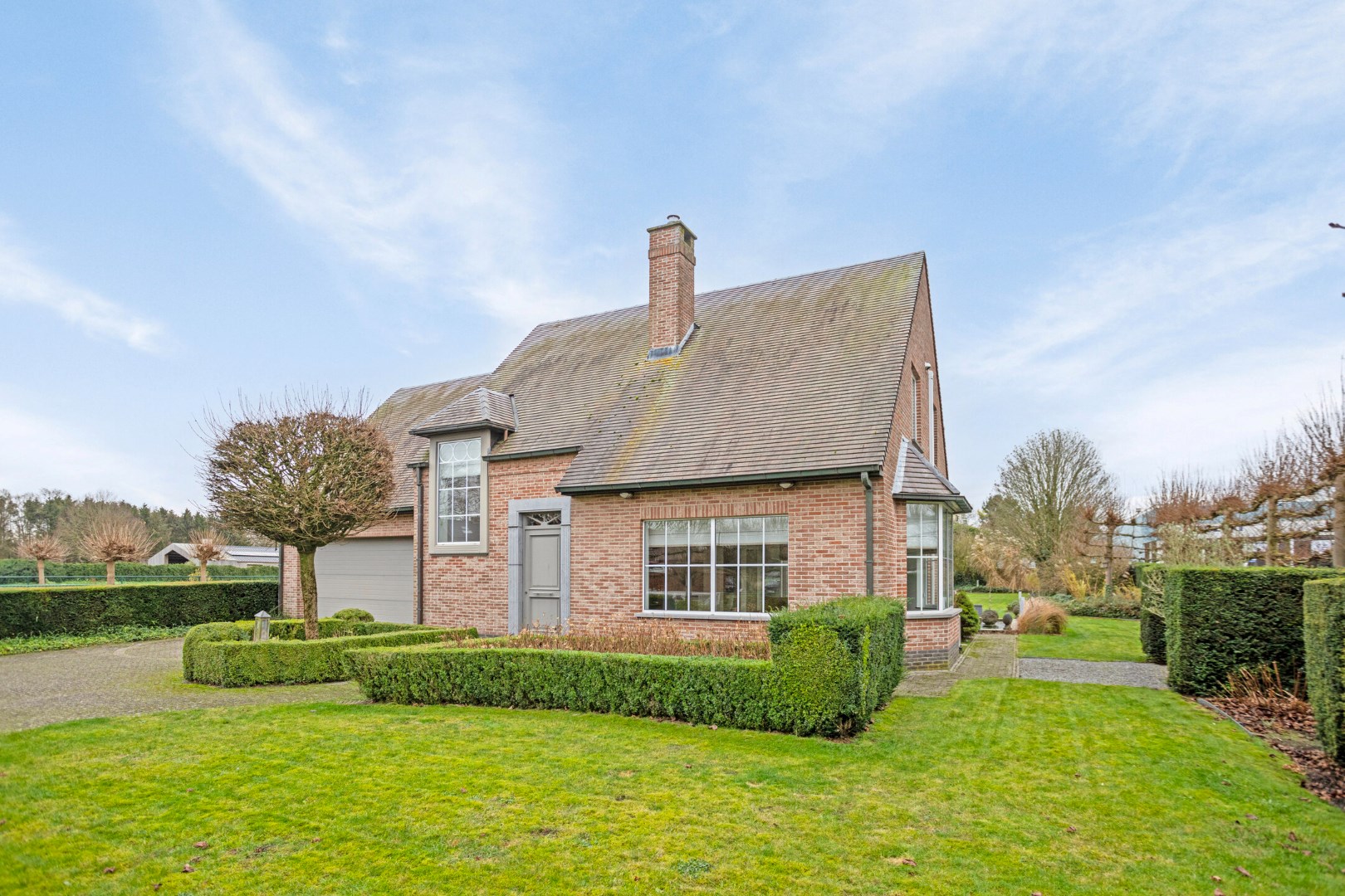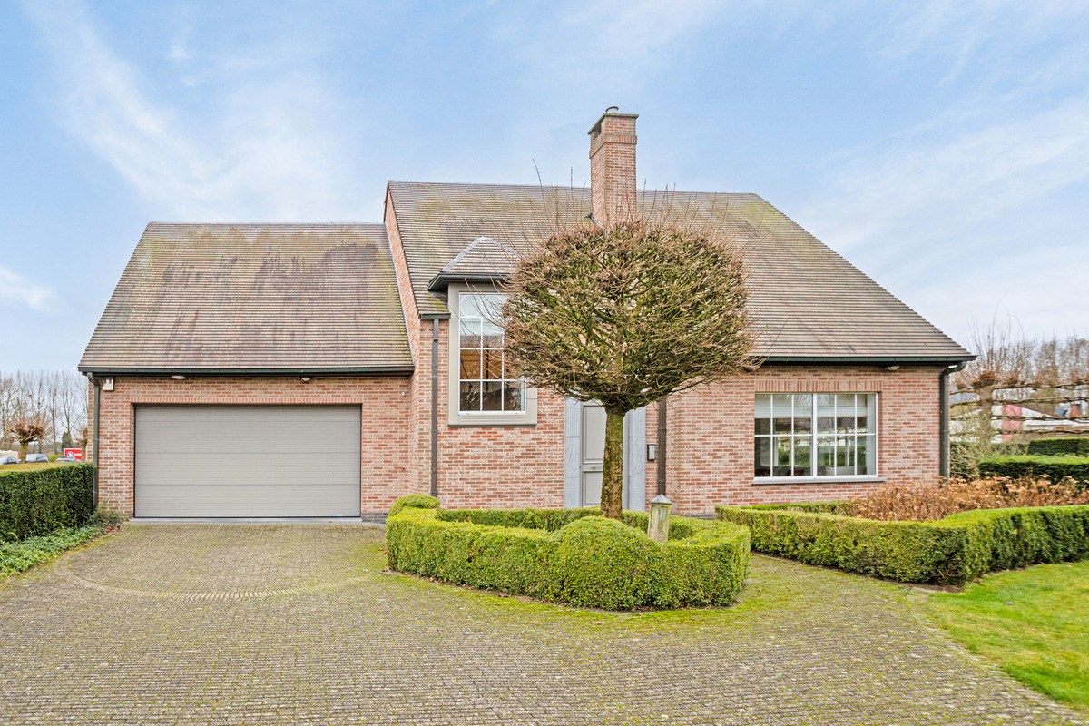 De villa biedt op het gelijkvloers een royale inkomhal met vestiaire en gastentoilet, een ruime woonruimte met inbouwhaard, een woonkeuken met eethoek, en een inpandige garage met bijkeuken. Op de verdieping bevinden zich 3 slaapkamers, een badkamer en een zolderkamer. De woning heeft bovendien een fraai aangelegde tuin met terrassen, een pergola, een vijverpartij en een poolhouse – de ideale setting voor een comfortabel gezinsleven.
