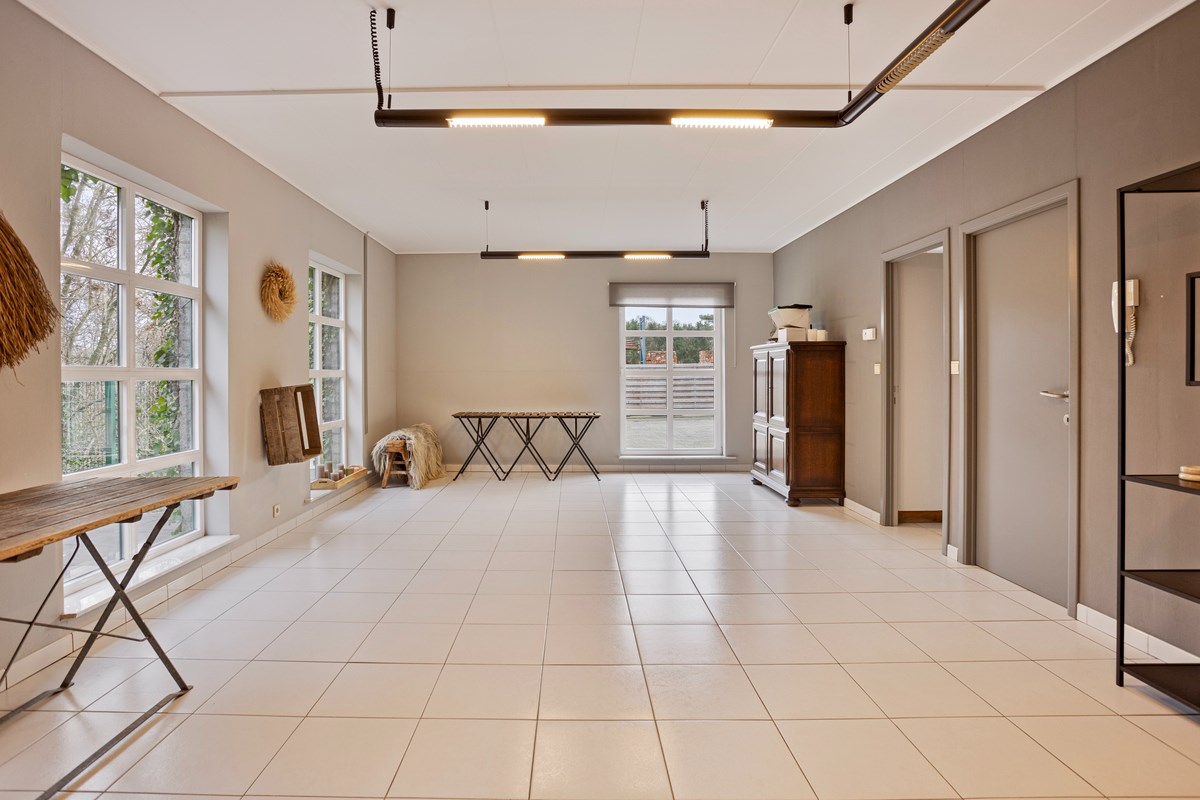 Het bedrijfsgebouw is ideaal voor ondernemers die hun bedrijf aan huis willen combineren. De burelen bieden voldoende ruimte voor vergaderingen, kantoorwerkzaamheden, archief, sanitair en een refter. Aansluitend is er een magazijn van 510m², met een uitbreiding van een werkplaats van 102m², wat talloze zakelijke mogelijkheden biedt.