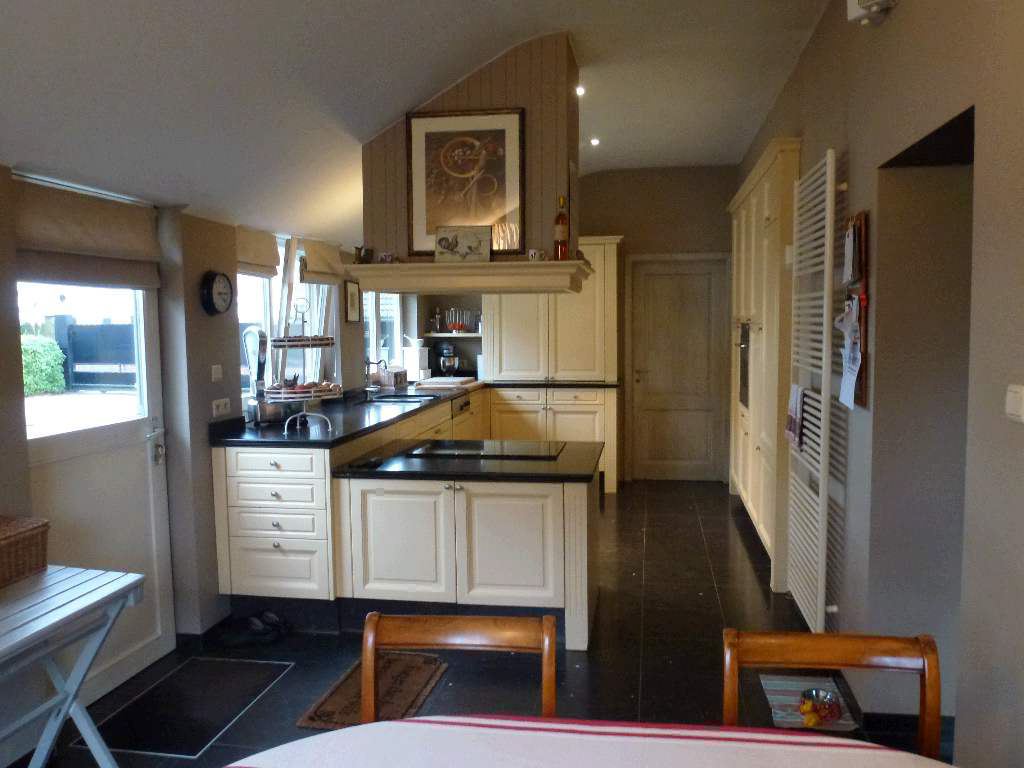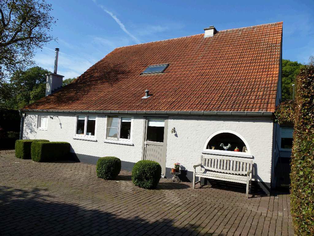 Eigentijdse woning in landelijke stijl op een perceel 1254m². Indeling: royale inkom met kastenwand, gastentoilet en toegang tot een kantoor 15m². Woon- en eetkamer 55m² met open trapzaal en inbouwhaard. Luxueus ingerichte woonkeuken 23m² met ontbijthoek, schuiframen, achterinkom en aparte bergplaats met provisiekelder. TssVerd: comfortabele badkamer met ligbad en toilet. Verd1: overloop 17m², hoofdslaapkamer 30m² met dressing, 2e slpk 18m², 3e slpk 15m², 4e slpk 12m². Bergzolder bereikbaar via vlizotrap. Multifunctioneel bijgebouw bereikbaar via Krommeweg met toegangspoort tot het eigendom. Mogelijkheid tot aankoop van naastliggend perceel grond ca.800m². Wg, Gvg, Gdv, Gvkr, Vv. EPC: 390 kWh/m²jaar UC:1687910.