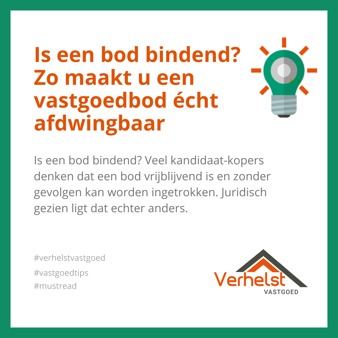 Pas wanneer een volledig bod is en de verkoper het zonder enig voorbehoud aanvaardt, ontstaat er een bindende verbintenis tussen beide partijen. Vanaf dat moment is het bod daadwerkelijk afdwingbaar.