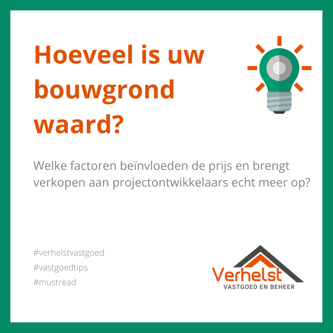 Bouwgronden worden almaar schaarser. Dat de gemiddelde prijzen van bouwgrond in Vlaanderen blijven stijgen is dus niet verwonderlijk. Maar welke factoren bepalen nu eigenlijk de waarde van bouwgrond en verkoopt u bouwgrond beter aan een particuliere bouwheer of aan een projectontwikkelaar? Met de tips van Verhelst Vastgoed maakt u de juiste keuzes.